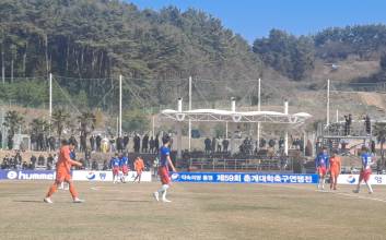 득점이 필요했던 제주국제대가 후반 초반부터 맹공을 퍼부었다. 후반 3분 프리킥 상황에서 나온 유동우의 헤더가 골대를 빗나갔다. 중앙대는 후반 10분 박정훈의 왼발 슈팅이 골키퍼에게 막히며 무위에 그쳤다. 파상공세를 퍼붓던 제주국제대가 후반 15분 결실을 봤다. 왼쪽 측면에서 배진우가 올린 크로스를 남기성이 오른발 발리슛으로 연결, 그대로 골네트를 출렁였다. 기쁨도 잠시였다. 1분 뒤 중앙대 박정훈의 컷백에 이은 강효온의 득점이 터졌다. 분위기를 탄 중앙대는 손쉽게 제주국제대 골문을 열었다. 후반 23분 역습 상황에서 정종근의 패스를 쇄도하던 강효온이 왼발 슈팅으로 마무리하며 2점 차 리드를 쥐었다. 3분 뒤에는 박정훈이 아크 부근에서 때린 왼발 슈팅이 골문 오른쪽 구석을 출렁였다. 4-1로 앞선 중앙대는 공세를 멈추지 않았다. 후반 31분 정종근의 왼발 슈팅이 크로스바를 강타했다. 중앙대는 남은 시간 정상적으로 경기를 운영하며 리드를 지켰고, 고대하던 우승을 이뤘다. 태백=김희웅 기자