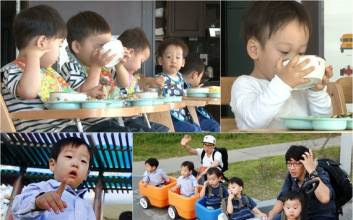 ‘슈퍼맨이 돌아왔다’에서 삼둥이와 쌍둥이가 만났다.23일 KBS2 예능 ‘해피선데이 - 슈퍼맨이 돌아왔다’에서는 송일국의 삼둥이 아들 대한,민국,만세와 이휘재의 쌍둥이 서언,서준이가 만나 즐거운 시간을 보내는 모습이 전파를 탔다.이날 삼둥이와 쌍둥이는 함께 식사하기에 도전했고 송일국의 집에 방문한 이휘재의 두 쌍둥이 서언, 서준 두 쌍둥이는 삼둥이 형들이 식탁 의자에 앉자 그대로 따라하며 삼둥이 따라잡기에 나섰다. 삼둥이 형들의 밥먹는 모습에 서언이와 서준이는 서툰 숟가락질을 시도하기도 했으나 서툰 숟가락질에 결국 손으로 먹는 모습을 보여 웃음을 자아냈다. 밥으로 장난치던 서언이는 결국 식판을 떨어뜨렸다. 졸지에 밥을 못 먹게된 서언이는 옆자리에 앉은 삼둥이 중에 둘째인 민국이 형을 쳐다봤다. 민국이는 자기의 식판에서 호박을 집고는 “이고는 호박이요. 쫌 모고봐요" 라고 말하며 서언이 입에 넣어줘 귀여움과 훈훈한 모습을 자아냈다. 이후 형의 친절에 반한 서언이는 계속해서 민국이 밥을 뺏어먹어 웃음을 자아냈다. 또한, 서언이와 서준이는 송일국의 삼둥이 형들과 함께 송수레 탑승에 첫 시도를 하며 눈길을 끌기도 했다. 한편 삼둥이 아빠 송일국은 이휘재에게 "내년에 트라이애슬론 대회에 함께 나가자"고 제안했고 이휘재가 머뭇거리자 다시 "올림픽 코스말고 스프린터 코스같은 짧은 걸로 도전하면 된다"며 집요한 모습으로 폭소를 유발했다. 한편 이날 ‘슈퍼맨이 돌아왔다’ 방송에서는 타블로의 연애편지가 공개됐다. 추성훈은 동생 추정화의 남편이자 예비 매제 이와타에 "내 동생 행복하게 해줄 자신 있나"라고 물었고 자신만만 대답에 추성훈의 가족들은 축하의 박수를 쳐줬다.슈퍼맨이 돌아왔다 삼둥이와 쌍둥이 만남 소식에 누리꾼들은 "슈퍼맨이 돌아왔다, 이러다 정말 슈퍼맨될 기세다", "슈퍼맨이 돌아왔다, 쌍둥이 삼둥이 모두 귀여워"등의 반응이 이어졌다. 온라인 일간스포츠(사진 = KBS2 '슈퍼맨이 돌아왔다‘ 방송화면 캡처)