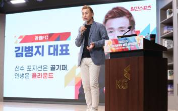 김병지(53) 강원FC 대표가 ‘1타 강사’로 변신했다. 프로스포츠 구단, 각 기업 마케팅 담당자들을 대상으로 자기 이야기를 진솔하게 풀었다. 김병지 대표는 지난 27일 서울 중구 순화동 KG타워 지하 1층 하모니홀에서 열린 ‘2023 IS 스포츠 마케팅 써밋 아카데미’ 14강 강연자로 나섰다. ‘선수 포지션은 골키퍼, 인생은 올라운드’라는 주제로 본인의 마케팅 예시를 흥미롭게 이야기했다.1992년 7월부터 24년간 프로 생활을 한 김병지 대표는 골키퍼 장갑을 벗은 뒤에도 축구계를 떠나지 않았다. 해설위원을 거쳐 지금은 행정가로 한국 축구 발전에 이바지하고 있다. 유튜브를 통해 거침없는 입담을 과시하는 크리에이터이기도 하다. 그는 다소 독특한 이력처럼 선수 시절에도 그라운드 위에서 톡톡 튀는 존재였다. 금발의 ‘꽁지머리’는 그의 트레이드 마크다. 골대를 묵묵히 지키는 골키퍼였지만, ‘드리블’ 역시 김병지 대표하면 빼놓을 수 없다. 김병지 대표는 “한국에서 뒷머리를 보고 알아보는 사람이 몇 있을까”라며 “선수 생활 초기에 나를 알릴 기회는 거의 없었다. 프로 무대에서 나를 알릴 수 있는 것은 꽁지머리와 염색이었다. 골키퍼로서 틀을 깨고 드리블한 것도 그렇다. 김병지 하면 떠오르는 단어가 있지 않나. 이게 마케팅”이라고 했다. 꽁지머리와 드리블은 은퇴 후에도 김병지 대표를 나타내는 ‘키워드’가 됐다. 그는 키워드를 만들기 위해 ‘스토리’가 필요하다고 했다. 그는 고등학교 재학 시절 키 성장이 멈춰 잠시 골키퍼 장갑을 벗었고, 그때 필드 플레이어로 활약하면서 드리블을 연마한 것이 골키퍼로 개성을 갖는 데 도움이 됐다고 전했다. 다만 그는 1998년 울산을 챔피언 결정전으로 올린 포항전 헤더 골로 스토리가 완성됐다며 “드리블에 실패하면 객기가 될 수 있었다. 나는 (헤더 골로) 마무리를 했다. 마케팅이라는 것도 과정이 있지만, 결과를 만들지 못하면 여러분은 시말서를 써야 한다”며 웃었다. 기나긴 선수 생활을 마친 김병지 대표는 해설자로 쓴맛을 봤다. 경상도 특유의 사투리 억양 탓에 1년 반 만에 마이크를 내려놨다. 그러나 유튜브의 등장이 전화위복이 됐다. 김 대표는 비교적 제약이 없는 유튜브를 통해 해설하며 많은 팬의 호평을 끌어냈다. ‘관점’의 중요성을 강조한 그는 “유튜브에서는 내가 하고 싶은 말을 다 하고, 직설적으로 이야기할 수 있었다. 그것을 듣고 싶은 분들이 많았다”며 “(해설가로서) 이 과정을 거치면서, 실패가 실패로 끝나는 게 아니라 실패를 어떻게 활용하느냐에 따라 결과가 달라질 수 있다는 것을 알았다”고 전했다. 한 구단의 대표지만, 여전히 ‘스타’인 김병지 대표는 강연 말미에도 ‘키워드’의 중요성을 강조했다. 뇌리에 박힐 만한 문구와 말이 세인의 마음을 사로잡을 수 있다고 했다. 김 대표는 “나는 사인할 때면 ‘내 뒤에 공은 없다’는 문구를 적는데, 사람들이 정말 멋있다고 한다. 내용을 보면 웃긴 게 내가 골키퍼 중 골을 가장 많이 먹혔다”면서 “(결국) 메시지다. 제품에 상관없다. 키워드가 들어가야 한다”고 힘줘 말했다.지금의 김병지 대표를 만든 것은 단연 철저한 자기관리다. 김 대표는 24년간의 선수 생활 동안 술, 담배에 일절 손에을 대지 않은 것으로 유명하다. “자기관리 덕에 선수 생활을 오래 할 수 있었다”는 그는 은퇴 후 자기관리의 영역이 바뀌었다. 김 대표는 “나는 시간이 되는 한 사진 촬영, 사인 등을 팬들에게 다 해준다. 이것도 자기관리다. 가끔 못 해줘서 욕하는 분들이 있는데, 내게 사인을 받은 분들이 쉴드(비호)를 쳐준다”며 “자기관리는 한 분야의 최고가 되기 위한 가장 중요한 포인트”라고 제언했다.김희웅 기자 2023.06.29 08:41