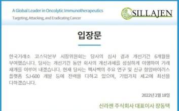 한국거래소 기업심사위원회가 신라젠의 상장폐지를 발표했다.       18일 한국거래소 기업심사위원회는 거래정지 중인 신라젠의 상장폐지를 결정했다. 이에 신라젠은 즉각 이의 신청 입장을 밝혔다. 신라젠 측은 “즉각 이의 신청하겠다. 향후 코스닥 시장위원회에서 적극적으로 소명할 것”이라고 말했다.       이날 기업심사위원회 결정 이후 최종 상장폐지 여부는 앞으로 20일(영업일 기준) 이내에 열릴 코스닥시장위원회에서 확정된다. 코스닥시장위원회는 상장 폐지나 개선기간 부여를 결정할 수 있다.       거래 재개를 기대했던 주주연합도 실망한 표정이다. 주주연합은 기업심사위원회 개최 전 성명서를 내며 거래 재개를 촉구했다. 주주연합은 “신라젠은 한국거래소에서 요구한 개선사항 3가지를 모두 완료했다. 거래재개 결정을 고심할 이유가 없다”고 밝힌 바 있다.       신라젠은 거래 재개와 쇄신을 위해 주인도 바뀌었다. 엠투엔이라는 새 주인을 만났고, 추가 유상증자를 통해 1000억원에 달하는 임상 자금도 확보했다. 이에 주주연합은 “거래소가 요구한 경영 투명성, 재무 건전성 문제가 해결됐다”고 주장했다.     한때 코스닥시장에서 시가총액 2위까지 올랐던 신라젠은 문은상 전 대표 등 전직 경영진이 횡령·배임 혐의로 구속기소 되면서 2020년 5월 상장적격성 실질심사 사유가 발생, 주식 거래가 정지됐다.     상장 폐지 여부를 두고 2020년 8월 기업심사위원회가 열렸으나 관련 심의를 종결하지 못했으며 같은 해 11월에 개선기간 1년이 주어졌다. 신라젠은 개선 기간이 종료된 뒤 지난달 21일에 개선계획 이행내역서를 제출한 바 있다.       신라젠의 분기 보고서에 따르면 2020년 말 기준 소액 주주 수는 17만4186명, 보유한 주식의 지분율은 92.60%다.        김두용 기자 kim.duyong@joongang.co.kr