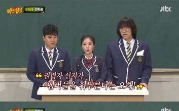 '아는형님' 신지가 코요태 내 실세를 밝혔다.23일 오후 방송된 JTBC '아는형님'에서는 데뷔 20주년을 맞은 그룹 코요태가 전학생으로 출연했다.이날 강호동은 "모두 신지가 실세인 줄 알지만 가장 보살이라고 하던데?"라고 질문했다. 신지는 "데뷔 후 많은 분들이 내가 주도권을 다 잡고 휘두른다고 생각하더라. 그런데 실제 권력자는 김종민이 하고 있고 요즘은 더 제멋대로다"라고 폭로해 웃음을 안겼다.이를 들은 김희철은 "예전에 슈퍼주니어 데뷔 초창기 때 '신인시절 잘못하면 끌려가는 4대 천왕이 있었다. 백지영, (쿨의) 유리, 채리나, 신지였다"라며 "되게 무서웠는데 알고보니 정말 친절했다. 가짜 소문이었다"고 말했다. 이에 신지는 "그 소문을 만들어낸 것도 김종민이다"라고 털어놔 눈길을 끌었다. 홍신익 기자 hong.shinik@jtbc.co.kr 2019.02.23 21:24