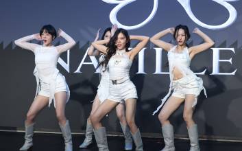그룹 나빌레라 사야, 릴라, 멜로디, 애니가 3일 오후 서울 마포구 동양북스 빌딩에서 열린 데뷔 싱글 앨범 'NO LIMIT(노리미트)' 미디어 쇼케이스에 참석해 타이틀곡 무대를 선보이고 있다.
