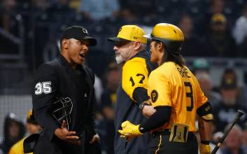 피츠버그 파이리츠의 배지환이 스트라이크 판정에 항의하다 퇴장을 당했다. 배지환은 28일(한국시간) 미국 펜실베이니아주 피츠버그 PNC파크에서 열린 미국 메이저리그(MLB) 샌디에이고 파드리스와의 홈 경기에서 7번 타자·2루수로 선발 출전, 2타수 무안타 1타점을 기록했다. 이날 경기는 김하성과 배지환의 맞대결에 관심이 모아졌다. 이번 시즌 첫 코리안 데이이자, 이들의 통산 첫 만남이 성사되는 날이었다. 최근 1번 타순에서 맹타를 휘두르고 있는 김하성과 빠른 발로 주가를 높이고 있는 배지환이 어떻게 ‘코리안 데이’를 수놓을지 주목됐다. 초반 분위기는 좋았다. 김하성이 2회 초 2타점 적시타를 때려내며 멀티 안타를 작성한 가운데, 배지환도 2회 말 무사 1, 3루에서 좌익수 희생플라이를 쏘아 올리며 추격의 발판을 마련했다. 배지환의 타점으로 분위기를 반전시킨 피츠버그는 이후 2점을 추가하며 동점을 만든 뒤, 4회까지 3점을 더 올리며 역전에 성공했다. 하지만 배지환은 더 이상 웃지 못했다. 3회 말과 5회 말 연달아 삼진을 당하며 안타를 생산하지 못했다. 9경기 연속 무안타 위기가 드리워졌다. 그리고 이어진 6회 말, 배지환은 퇴장 판정까지 받으며 그라운드를 떠났다.