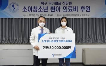 탁구 국가대표 신유빈(17·대한항공)이 또 한번 따뜻한 선행을 했다. 신유빈의 선수의 부친 신수현씨는 28일 “신유빈이 고향인 경기도 수원 아주대병원의 소아 청소년 환자를 위해 최근 광고 모델 촬영 등의 활동으로 얻은 수익금 8000만원을 기부 했다” 고 밝혔다. 이번 기부는 신유빈이 최근 올림픽 이후 국민들로부터 얻은 큰 관심과 사랑을 사회에 환원하고 싶다는 본인의 뜻에서 이루어졌다. 2020도쿄올림픽 기간 뜨거운 관심을 받았던 신유빈은 귀국 후 광고 모델 촬영 등을 통해 얻은 수익금을 흔쾌히 사회에 환원하기로 결정했다. 신유빈은 지난 7월 도쿄올림픽에서 대한민국 탁구 국가대표팀 막내로 나서 여자 단체전 8강, 개인단식 32강에 오르는 등 ‘국대 에이스’로 자리매김한 동시에 앞으로의 모습을 더욱 기대하게 만들었다. 최근 열린 국가대표 선발전에서는 7전 전승을 거두면서 11월 미국 텍사스주 휴스턴에서 열리는 ‘2021 세계선수권대회 파이널스’에 한국 국가대표로 출전을 확정했다. 신유빈은 지난해 7월 소속팀 대한항공 탁구단에서 받은 첫 월급을 보육원 아이들에게 주는 운동화로 기부했다. 한국초등학교탁구연맹에도 600만원 상당의 탁구 용품을 기부했다. 또 올해 4월에도 탁구 꿈나무들을 위해 한국여성탁구연맹에 현금 500만원과 탁구 용품을 흔쾌히 기부했다. 이번 후원금은 아주대병원 소아청소년 환자들에게 기부돼 가정형편이 어려워 치료나 수술을 받지 못하는 환아 들을 위해 쓰일 예정이다. 한상욱 아주대병원장은 “코로나19로 인해 환자, 의료진 모두 많이 지치고 힘든 가운데 국민들에게 큰 기쁨과 희망을 준 신유빈 선수가 아주대병원의 소아, 청소년 환자를 위해 기부하여 주신 것에 감사드리며, 병마와 함께 경제적 어려움으로 더 고통받는 환아 들을 위해 소중하게 사용하겠다”면서 “신유빈 선수의 희망 에너지와 함께 착한 기부가 선한 영향력으로 널리 퍼져 가길 기대한다”고 밝혔다. 신유빈은 “어릴 적부터 소아 환아 들을 위해 도움이 되고 싶다는 꿈을 가지고 있었는데 생각보다 빨리 이룰 수 있게 되어서 너무 기쁘다” 며 “이번 도쿄올림픽에서 국민여러분들의 많은 사랑을 받아 정말 감사하게도 저에게 처음으로 광고모델을 경험 할 수 있는 기회를 주셨다. 제가 받은 사랑을 도움이 필요한 아이들에게 조금이라도 나누어줄 수 있다면 그것이 저에게는 더 큰 행복이다. 이번 기부를 통해 더 열심히 노력해서 큰 선수가 되어야겠다 는 동기부여가 되었다. 앞으로도 도움이 필요한 곳에 더 많은 기부를 하고싶다” 는 뜻을 전했다. 이은경 기자