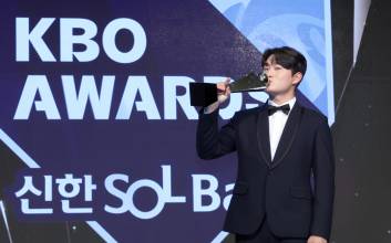 김택연은 동료들과 코칭스태프, 구단 프런트에 두루 감사 인사를 전했다. 이어 "조금이나마 부모님께 기쁨을 드린 것 같아 너무 좋다"며 "2군에 다녀오든, 어떤 자리에 있든 항상 큰 목소리로 응원해 주신 팬분들이 시즌 내내 너무 큰 힘이 됐다"고 말했다.김택연은 자신이 1년 내내 신인왕 1순위로 불렸지만, 의식은 하지 않았다고 했다. 그는 "시즌 전 목표로만 삼았을 뿐, 시즌 개막 후에는 한 번도 의식하지 않았다. 시즌이 다 끝나고, 포스트시즌까지 끝나고 나서야 '받을 수 있으려나' 생각했던 것 같다"고 했다.19세에 팀 마무리를 꿰찬 건 '돌부처' 멘털이 있기에 가능했다. 김택연은 "신인이라 배울 게 많았다"면서도 "그래도 마운드 위에선 나이답지 않은 모습, 열 아홉 살 답지 않은 담대함을 보여드리고 싶었다. 그렇게 생각하니 마운드 위에서 좋은 플레이로 나온 것 같다"고 말했다.