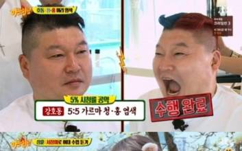 멤버 모두가 시청률 5% 공약을 완수했다.15일 방송된 JTBC '아는 형님'에서는 시청률 5% 달성 공약을 이행하는 멤버들의 모습이 그려졌다.먼저 강호동이 미용실을 찾아 머리 반반 염색에 나섰다. 강호동은 "이왕하는 거 제대로 하자"고 의지를 다졌지만 생애 첫 탈색에 이내 "상처난 데 소금 뿌린 것 같다"고 고통을 호소했다. 하지만 이내 염색이 완성되자 만족한 듯 여러 장의 셀카를 찍었다. 멤버들 또한 "너무 예쁘다" "진짜 잘 어울린다"며 강호동의 변신을 칭찬했다.'너무 쉽다'는 의견에 강호동에게는 추가 미션이 주어졌다. 강호동은 한 초등학교의 횡단보도에서 교통 통제에 도전했다. 소통왕이라는 별명답게 유모차 속 어린 아이와도 눈을 맞추며 소통에 나섰다. 급기야는 지나가는 버스와 택시에도 인사를 건네며 마치 유세 현장에 와 있는 듯한 느낌을 줘 웃음을 안겼다.이어 서장훈은 여장을 하고 여대에 갔다. 그야말로 머리부터 발끝까지 치명적인 모습. 서장훈이 강의실 문을 열고 들어오자 학생들은 "발이 너무 커" "예뻐요"라며 반가움을 표했다. 남자친구 있냐는 같은 과 학생의 물음에 서장훈은 "김희철이랑 사귈 것"이라고 새침하게 말했다. 이어 김희철이 '엽기적인 그녀' 속 장면을 패러디하며 깜짝 등장해 학생들로부터 환호를 받았다.민경훈은 의정부고 학생을 만나 하이 패션 브라더스를 결성했다. 두 사람은 코인 노래방에서 '나비잠'을 열창하며 즐거운 시간을 보냈다. 두 사람의 다정한 모습에 김희철은 "경훈이랑 스케치북에도 아직 못 나갔는데, 두 사람 분위기가 너무 좋다. 질투난다"고 해 웃음을 자아냈다.이수근의 '오프로드 생존게임'이 이어졌다. 첫 번째 관문은 강호동이 지키고 있었다. 강호동과의 공 튀기기 게임에서 진 이수근은 강호동을 태운 리어카를 끌고 산에 올라야만 했다. 야심차게 도전했지만, 리어카는 꿈쩍도 하지 않았다. 김희철이 도우미로 활약했지만 역부족이었다. 이에 이수근은 "그냥 제가 죽으면 안되나요?"라고 물었다. 이수근은 상의까지 탈의하며 남은 힘을 모두 짜냈다.두 번째 관문부터 이수근의 남다른 촉이 발휘되기 시작했다. 복불복 게임으로 생수 10병 중 진짜 물은 단 한 병. 9번 물병을 고른 이수근은 거리낌없이 원샷을 해 주위를 놀라게 했다. 알고 보니 10%의 확률로 실제 물을 고른 것. 이어진 이구동성 게임에서도 이수근은 연이어 정답을 맞히며 미션에 성공했다.이상민은 '아는 형님' 주제가 만들기에 나섰다. 헨리의 교가를 3분으로 리믹스했으며, 멤버들은 각각 랩·노래·코러스 등 자신의 파트를 소화했다. 김희철이 조성모와 김장훈 성대모사를 하며 분위기를 띄웠고, 김영철이 폭발적인 고음으로 시선을 사로잡았다. '아는 형님'의 주제가 다운 센스 있는 가사가 돋보였다.마지막으로 김희철이 일본에서 니코니코니 외치기 미션을 깔끔히 소화하며 전 멤버 모두가 시청률 5% 공약을 완수했다. 특히 김희철은 자비로 카메라 1대만을 가지고 미션에 임했다. 부끄러움도 잠시 김희철은 시민들과 어울리며 우주대스타의 인기를 뽐냈다.'아는 형님' 주제가 뮤직비디오를 끝으로 방송이 마무리됐다. 뮤직비디오에는 그간 '아는 형님'에 출연했던 게스트들도 함께여서 그 의미가 더욱 뜻깊었다.정여진 기자 jeong.yeojin@jtbc.co.kr