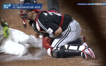 수비 교체를 위해 더그아웃 앞에 서 있던 LG 트윈스 포수 박동원(35)은 비디오 판독 결과 원심이 번복되자 허탈한 표정을 지었다. '홈 태그 악몽'이 반복됐기 때문이다. 박동원은 29일 대전한화생명볼파크에서 열린 한화 이글스전에 8번 타자 포수로 선발 출전해 팀이 0-2로 뒤진 3회 말 아쉬운 실점을 했다. 2사 2루에서 노시환의 좌전 안타 때 2루 주자 문현빈이 홈을 파고 들었다. 좌익수 문성주의 원바운드 송구가 정확하게 이뤄졌다. 타이밍상 아웃. 문현빈이 슬라이딩으로 발을 뻗었지만 구심은 아웃을 선언했다. 그러나 김경문 한화 감독이 비디오 판독을 신청했고, 원심은 세이프로 번복됐다. 스코어는 0-3으로 벌어졌다. 박동원이 정확하게 포구하지 못한 상태에서 문현빈의 발과 충돌하며 공이 떨어졌다. 그 사이 문현빈이 홈 플레이트를 터치했다. 포수 포구 실책. 분명 아쉬움이 남는 플레이였다. 박동원은 최근 두 달 홈 태그 상황에서 고통을 겪고 있다. 시작은 8월 1일 잠실 한화전에서였다. 박동원은 팀이 2-3으로 뒤진 7회 1사 3루 수비에서 문현빈의 1루수 앞 땅볼 때 1루수 천성호의 송구를 받아 홈으로 쇄도하던 손아섭을 기다렸다. 그러나 손아섭이 박동원의 태그를 피해 왼팔을 접고, 오른손으로 홈 플레이트를 터치하면서 득점에 성공했다. 지난 11일 잠실 KT 위즈전에선 4-2로 앞선 7회 초 무사 1, 3루에서 강현우의 투수 앞 희생번트 때 김영우가 공을 잡아 홈에 송구했다. 이번에도 타이밍상 아웃. 그러나 황재균은 박동원의 태그를 피하는 슬라이딩으로 득점에 성공했다. 분위기를 뺏긴 LG는 4-4 동점을 허용했고, 결국 8회 결승점을 내줘 4-6으로 졌다. 이때까지는 염경엽 LG 감독도 "순간적으로 일어나는 플레이여서 (어쩔 수가 없다)"라며 "좀 더 여유가 있으면 앞으로 나가는 건데 (정석대로 글러브를) 베이스 앞에 놓고 있을 수밖에 없다"라고 말했다. 이어 "나도 경험을 해봤지만 그런 플레이에 대응하기 쉽지 않다"라며 "스위밍 슬라이딩이 새로운 트레이드가 됐다. 수비수가 신경을 많이 써야 한다"라고 말했다. 박동원은 지난 26일 대전 한화전에서 또 한 번 충격에 휩싸였다. 팀이 1-0으로 앞선 7회 말 1사 2, 3루에서 하주석이 기습 번트를 시도했으나, 투수 김영우가 공을 잡아 런다운 플레이로 연결했다. 이 과정에서 홈에 몰린 노시환의 연기력에 속은 박동원은 급한 나머지 빈 글러브로 태그했다. 처음에는 아웃 판정이 나왔지만, 박동원이 공을 오른손에 쥐고 왼손 포수 미트로 태그한 장면이 잡히면서 비디오 판독 끝에 세이프로 판정이 번복됐다. LG는 결국 1-4로 졌다. 염경엽 감독은 "누가 봐도 아웃 상황이다. 박동원이 방심했다"라고 지적하며 "경기 후에 밤새 잠을 못잤다"라고 털어놓았다. 염경엽 감독은 29일 3회 말 수비 교대 후 박동원에게 홈 태그 상황의 수비에 대해 직접 시범을 선보이며 설명했다. 박동원은 당분간 홈 태그 상황에서 부담감을 크게 느낄 수 있다. 특히 상대가 포스트시즌에서 맞붙을 가능성이 가장 높은 한화여서 더 그렇다. 자칫 트라우마로 남을 수도 있다. 포스트시즌(PS)을 앞두고 철저한 대비가 필요하다. 대전=이형석 기자 2025.09.30 09:44