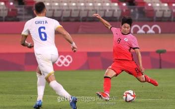 한국 남자축구 대표팀이 루마니아전 대승으로 도쿄올림픽 8강 진출에 불씨를 살렸다. 한국은 25일 오후 8시부터 일본 이바라키현 가시마의 이바라키 가시마 스타디움에서 루마니아와 2020 도쿄 올림픽 남자 축구 조별리그 B조 2차전에서 상대 자책골로 대회 첫 득점, 이강인의 멀티 골 등에 힘입어 4-0으로 승리했다. 뉴질랜드전에 이어 이날 역시 4-2-3-1 포메이션을 가동했다. 황의조(보르도)를 최전방으로 2선에는 이동경(울산), 이동준(울산), 엄원상(광주)이 나섰다. 중원에는 정승원(대구), 원두재(울산)이 호흡을 맞췄다. 수비진은 강윤성(제주), 박지수(상무), 정태욱(대구), 설영우(울산)가 포백을 구축했다. 골키퍼 장갑은 송범근(전북)이 꼈다. 김학범 감독은 이날 선발 라인업 5명을 교체하며 승부수를 던졌다. 선발로 투입된 이동경, 박지수, 이동준이 전반 상대 골문을 노렸지만 득점에는 실패했다. 전반 10분 이동경의 코너킥을 이동준이 헤딩으로 연결해 원톱 황의조가 받았지만 상대 골키퍼에 부딪혀 골로 이어지지 못했다. 공격에 바로 합류한 박지수가 다이빙 헤딩슛까지 시도했지만 득점에는 실패했다. 한국은 이어 전반 24분 이동경의 프리킥과 정태욱의 헤더로 다시 한번 골을 노렸지만 크로스바를 넘기며 득점하지 못했다. 첫 득점이 나온 건 전반 27분이었다. 중앙선부터 빠르게 공격에 나선 한국은 오른쪽 측면에서 이동준이 공을 받아 다시 골 지역으로 침투하는 황의조에게 날카롭게 크로스를 날렸다. 이동준의 크로스는 이를 저지하려던 루마니아 중앙 수비수 마리우스 마린의 오른발을 맞고 자책골로 이어졌다. 도쿄올림픽 남자 대표팀의 첫 득점이었다. 한국은 루마니아 측 퇴장으로 후반 더 유리한 승부를 펼쳤다. 루마니아는 전반 45분 이온 게오르게가 경고 누적으로 퇴장당하면서 후반전 동안 한 자리 없이 한국을 상대해야 했다. 한국도 후반 시작과 함께 정승원 대신 권창훈을 투입해 공격에 힘을 더했다. 한국은 후반 7분부터 이동경의 스루패스와 황의조의 일대일 기회를 얻었으나 골키퍼 선방으로 득점에는 실패했다. 추가 골은 후반 14분 나왔다. 이동경이 장거리에서 날린 슛이 상대 수비수를 맞고 이어 엄원상을 맞고 굴절해 골문 구석을 찔러 두 번째 득점으로 이어졌다. 후반 19분 이동준 대신 송민규를 투입한 한국은 시간이 갈수록 더 거세게 공격했다. 후반 19분 이동준 대신 송민규를, 후반 33분 이동경과 황의조 대신 김진규와 이강인을 투입한 한국은 경기 막판 이강인이 두 골을 더해 승리에 확실히 쐐기를 박았다. 이강인은 후반 39분 페널티킥에서 키커로, 후반 44분에는 강윤성의 침투로 연결된 공을 왼발로 차분하게 차 멀티 골을 완성했다. 이날 승리로 승점 3점을 챙긴 한국은 1승 1패(골 득실+3)를 기록하며 온두라스, 뉴질랜드(이상 승점 3점·골 득실 -3)와 승점 동률, 골 득실 앞서는 조 1위에 올랐다. 한국은 다가오는 28일 오후 5시 30분 요코하마 인터내셔널 스타디움에서 온두라스와 조별리그 최종전을 치른다. 차승윤 인턴기자 2021.07.25 22:17