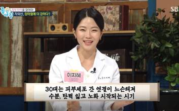 '미스 유니버스' 출신 한의사 이지혜가 '좋은 아침'의 전문가 군단으로 합류해 '피부 탄력 전도사' 역할을 톡톡히 했다. 이지혜 한의사는 4일 방송된 SBS '좋은 아침'에 출연해 류이라, 이인권, 유혜영 아나운서와 '피부 탄력을 잡아라!'를 주제로 이야기를 나눴다. 또한 가수 편승엽, 박수림, 최홍림이 출연해 5060세대의 피부 고민을 털어놨으며 이지혜 한의사는 이들을 위한 맞춤형 솔루션도 제시했다. 특히 이지혜 한의사는 "우리 몸에 있는 '엘라스틴'이 피부의 3~4%를 차지해, 비중은 작지만 피부의 콜라겐을 잡아주는 역할을 하기 때문에 피부 탄성을 좌우하는 중요한 역할을 한다"고 강조하며 탄력 밴드로 엘라스틴의 원리를 쉽게 설명했다. 이어 중장년층의 고민인 '가슴 처짐'에 대해, "뼈나 근육 때문이 아니라, 쿠퍼 인대 속 엘라스틴이 감소하면서 가슴의 탄력이 떨어지는 것"이라며 "엘라스틴 감소는 골반 탄력도 떨어뜨려 질 이완증, 요실금, 변실금의 발생 위험도 높아진다"라고 덧붙였다. 나아가 이지혜 한의사는 간단하게 일상에서 할 수 있는 탄력 관리법을 소개했다. 일명 '야옹 운동법'이라는 페이스 요가를 추천했는데, 그는 "입을 '야' 모양으로 최대한 길게 벌려 소리를 내고, 다음으로 입술로 치아를 모두 감싸면서 '옹' 소리를 내면서 입 다물면 된다. 이 동작을 10회 반복하면 얼굴 근육 강화시켜 주름을 예방할 수 있다"라고 친절하게 설명해줬다. 이에 유혜영 아나운서는 "따라해보니까 귀여워지는 느낌이 든다"며 '야옹 운동법' 시범을 보여 모두를 빵 터지게 만들었다. 한편 원광대학교 한의과대학 출신인 이지혜 한의사는 '월드 미스 유니버시티'에도 참가한 재원으로, '좋은 아침' 등 다양한 방송에 출연해 건강전도사 역할을 하고 있다. 이지수 디지털뉴스팀 기자