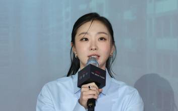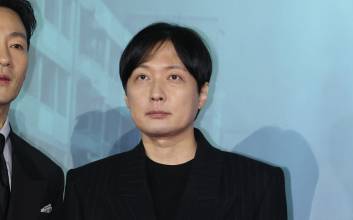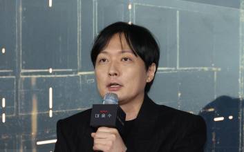 배우 박해수, 김병우 감독이 16일 오전 서울 용산구 CGV용산아이파크몰에서 열린 넷플릭스 영화 '대홍수' 제작보고회에 참석해 포토타임을 갖고 있다.