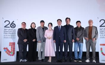 전주국제영화제가 26번째 축제의 출발을 알렸다.1일 오후 서울 용산구 CGV 용산아이파크몰에서는 제26회 전주국제영화제(JIFF) 상영작 발표 기자회견이 열렸다. 이 자리에는 우범기 조직위원장, 민성욱‧정준호 공동집행위원장, 문석‧문성경‧전진수 프로그래머, 박태준 전주프로젝트 총괄 프로듀서 등이 참석했다.오는 30일 개막하는 올해 JIFF는 ‘우리는 늘 선을 넘지. Beyond the Frame’라는 슬로건 아래 내달 9일까지 열흘간 영화의 거리를 비롯한 전주시 일대에서 열린다.우범기 조직위원장은 “1년 만에 다시 뵙게 돼 기쁘고 반갑다”며 “올해로 26회째를 맞은 JIFF는 단순한 영화 축제를 넘어 국제 문화 도시 전주의 정체성을 전 세계에 알리는 장이 됐다. 전국 영화 애호가가 보내준 전폭적인 성원과 사랑 덕분”이라고 인사했다. 이어 마이크를 넘겨받은 민성욱 공동집행위원장은 “언제나 그렇듯 초심을 잊지 않고 전주다운 멋, 전주다운 맛으로 준비했다”고 말했다.개막작은 라두 주데 감독의 ‘콘티넨탈 '25’(Kontinental '25)이다. 문성경 프로그래머는 “유럽에서는 ‘젊은 거장’이라고 부르는, 최근 영화계가 가장 궁금해하는 감독의 신작”이라며 “영화는 스마트 폰으로 촬영됐으며, 스토리 진행 형식에서도 틱톡, 인스타그램 등 플랫폼이 큰 영향을 차지한다. 온라인의 즉각성 반영했다”고 소개했다.폐막작은 김옥영 감독의 ‘기계의 나라에서’(In the Land of Machines)다. 네팔 이주 노동자들에 관한 다큐멘터리로, 시집 ‘여기는 기계의 도시란다’에 실린 69편의 시를 쓴 35명의 네팔 이주 노동자 중 한국에 거주 중인 3명의 삶을 밀착해 쫓아다닌다. 문석 프로그래머는 “시와 다큐멘터리의 만남에 관심 기울여 주면 더욱 흥미로울 것”이라고 말했다.