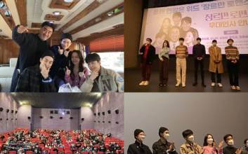 우정출연자까지 나서서 따뜻하고 유쾌한 영화를 홍보한다. 개봉 2주차에도 흥행 열기를 이어나가고 있는 영화 '장르만 로맨스(조은지 감독)'가 지난 27일, 28일 서울 지역 무대인사를 통해 관객과 만났다. 이날 무대인사에는 류승룡부터 오나라, 이유영, 성유빈, 무진성, 조은지 감독 그리고 우정출연한 오정세까지 참석하며 관객들의 뜨거운 호응을 이끌어냈다. 먼저 슬럼프에 빠진 베스트셀러 작가 현으로 인생 캐릭터를 갱신한 류승룡은 "많은 스태프, 배우들과 오랜 시간 행복하게 찍은 영화입니다. 여러분들의 귀한 시간과 귀한 발걸음에 정말 감사드립니다"라며 상영관을 가득 채운 관객들에게 감사 인사를 전했다. 현의 전 부인 미애 역으로 러블리한 매력을 뽐낸 오나라는 "황금 같은 주말에 저희 영화를 선택해주셔서 감사합니다. 무대인사를 통해 여러분과 눈 마주치며 인사할 수 있어서 행복합니다"라고 인사했다. 이웃사촌 정원 역으로 4차원 매력을 한껏 발산한 이유영은 "재미있게 촬영한 영화인만큼 여러분들도 재밌게 보셨으면 좋겠습니다. 힐링 되셨길 바라며, 집에 돌아가시는 발걸음이 가볍고 따뜻하길 바랍니다"라고 감사의 마음을 밝혔다. 콩가루 집안의 아들 성경 역의 성유빈은 "거지같은 집구석에서 대학생이 되어 돌아온 성유빈입니다. 즐겁게 관람하셨다면 오늘부터 여러분은 저희 영화와 1일입니다"라는 재치 있는 인사말로 관객들의 웃음을 터뜨렸다. 이어 핫한 뉴페이스로 눈도장을 찍은 무진성이 "천재 작가 지망생 유진으로 영화에 처음 데뷔한 무진성입니다. 저에게 있어서 너무나 소중한 첫 영화를 보러 와주신 모든 분들, 사랑해요"라는 달달한 멘트로 환호성을 끌어냈다. 영화의 연출을 맡은 조은지 감독은 "한번 웃기 시작하면 끝까지 웃음이 멈추지 않는 영화입니다. 감사드리며 항상 건강하세요"라며 관객들을 따뜻한 마음을 전했다. 특별 출연한 오정세가 관객들의 성원에 힘입어 28일 무대인사에 합류해 화제를 모았다. 등장하자마자 뜨거운 함성과 환호를 이끌어내며 심스틸러의 위력을 보여준 오정세는 "저희 영화 되게 밝고 유쾌하고 신나는 영화입니다. 열린 마음으로 관람하시면 즐거움이 두배가 되지 않을까 싶습니다. 즐기시길 바랍니다"라고 전했다. 또한 류승룡의 생일을 맞아 팬클럽에서 이벤트를 준비해 눈길을 끌었다. 팬들의 깜짝 생일 축하에 류승룡은 "응원해주시는 우리 팬들 정말 감사드리고요. 감개가 무량합니다. 코로나 시국에도 불구하고 많은 분들이 극장에서 행복한 미소 지어주셔서 저희에게 큰 보람이 되었습니다. 아직 영화를 못 보신 분들도 영화관에서 따뜻함을 느낄 수 있도록 많은 입소문 부탁드리겠습니다"라며 감동 어린 소감을 전했다. 박상우 기자 park.sangwoo1@joongang.co.kr park.sangwoo1@joongang.co.kr 2021.11.29 16:19
