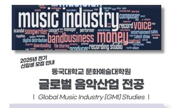동국대, 2025년도 전기 ‘글로벌 음악산업 전공(GMI)’ 석사과정 신입생 모집