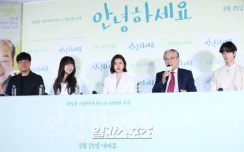 배우 이순재와 김환희가 세대를 뛰어 넘은 우정으로 따뜻한 힐링 무비를 완성했다. 이순재와 김환희는 호스피스 병동을 배경으로 벌어지는 이야기를 담은 영화 '안녕하세요(차봉주 감독)'로 첫 연기 호흡을 맞추게 됐다. 67살의 나이차가 무색할만큼 따뜻한 케미를 선사한다. 두 배우를 비롯해 차봉주 감독과 출연 배우들은 19일 오후 서울 용산구 CGV용산아이파크몰에서 진행된 시사회 및 간담회를 통해 영화에 대한 이야기를 나눴다. 25일 개봉하는 '안녕하세요'는 세상에 혼자 남겨져 의지할 곳 없는 열아홉 수미가 죽는 법을 알려주겠다는 호스피스 병동 수간호사 서진을 만나 세상의 온기를 배워가는 애틋한 성장통을 그린 휴먼 드라마다. 이번 작품으로 입봉한 차봉주 감독은 "영화 현장에서 16~17년 됐는데 언젠가 데뷔를 할 때 생각해서 글작업을 했다. 행복이 주제였다. 어렸을 때 영화를 보면서 많은 행복을 느끼고, 좋은 기억으로 남아있다. 영화 감독이 되면 행복이란 이야기를 하고 싶었다. 내 나름대로의 기준을 내린 건, 내가 마지막 순간을 마주 했을 때 웃을 수 있으면 좋을 거 같았다"고 말했다. 이어 "호스피스 병동을 보는데 유독 한분이 밝으셨다. 그 안에서 밝은 모습 보는데 나도 모르게 눈물 흘리면서 삶과 죽음이라는 가고 있는 감정들이 많이 바뀌게 된 상태였는데, 이런 감정을 수미라는 인물을 통해 알려드리고 싶었다. 정답은 없지만 생각해볼 문제라고 생각한다"고 설명했다. 극 중 이순재는 죽음을 앞둔 노인을, 김환희는 이런 환자들을 보며 삶과 죽음에 대해 다시 생각하는 소녀로 분했다. 김환희는 "시놉시스 받고 보게 되면서 무지에 부끄럽지만 호스피스 병동에 대해 정확히는 몰랐다. 이 작품 읽고 나서 어떤지에 대해 많이 조사했었다"며 "이런 주제를 가지고 쓰임에 있어서 하고 싶다는 생각이 들었다. 수미라는 캐릭터가 감정선이 밑바닥부터 시작해서 마지막엔 높이 올라가서 감정 폭이 넓은 아이다. 도전 욕구가 생기는 캐릭터를 좋아한다"고 출연 이유를 밝혔다. 김환희는 이순재, 유선, 송재림 등 다수의 선배들과 함께 작업했다. 이어서 그는 "이 작품은 스무살인 지난해 5월달 쯤 촬영하게 됐다. 스무살 성인이 됐다는 연기 부담감과 더불어 어떤 극을 이끌어 나간다는 부담이 굉장히 컸다. 작품을 이끌어 나갈 때 외롭다는 느낌도 받았는데 이 작품에는 너무나 멋진 배우들이 계셔서 이 분들에게 의지를 하고 싶은 생각도 들었던 거 같다"며 "연기적으로 도움도 받고 싶고, 위로도 받고 싶고. 그런 느낌으로 이 작품에 참여하지 않았나 싶다. 너무나 멋진 배우 분들이라 내가 조금 삐긋해도 잘 잡아주셔서 좀 더 즐기면서 촬영할 수 있었다. 선배님들께서 해주시는 칭찬 하나하나가 칭찬에 춤을 추는 고래 같은 느낌이라 성장할 수 있지 않았나 싶다. 칭찬에 힘입어서 더 호흡을 잘 맞출 수 있었다"고 말했다. 그 중에서도 이순재, 유선에 대한 애틋함을 드러냈다. 김환희는 "특히 유선, 이순재 선생님과 많이 만났는데 내 연기에 대한 피드백 받고 싶어 하는데 촬영하시면서 연기에 대한 피드백과 칭찬 해주셔서 좋은 연기로 관객 분들을 만날 수 있지 않았나 싶다. 영광스러운 현장이었다"고 덧붙였다. 이순재도 "배우는 출연할 수 있음이 축복이다. 나도 대학 때부터 영화보고 이쪽에 관심을 가졌다. 이번에는 젊은 배우들과 함께 했다. 김환희 배우가 너무 잘해줬다. 그래서 작품이 더 빛난 거 같다"며 "그 사이에 세상이 달라졌다. 세계로 뻗어 나간다. 윤여정, 오영수도 그러하지 않았나. 나도 '꼴뚜기 게임', '문어 게임'에라도 끼고 싶다. 오영수, 윤여정 뿐 아니라. 각 분야 젊은이들 추켜 세워주셔서 세계 도전할 수 있게 믿어주셨으면 좋겠다. 제2의 오영수, 윤여정도 충분히 가능하다"고 여전한 연기 열정을 내비쳤다. 유선은 '안녕하세요'를 '무공해 영화'라고 정의했다. 그는 "가정의 달인데 3대가 함께 와서 봐도 좋을 영화다. 살아가면서 나 역시도 그렇고 수미처럼 한 때 힘들었던 절망을 경험한다. 그 땐 깊은 어둠 속으로 들어가서 한줄기 희망과 빛조차 보이지 않을 때가 있는데 도와줄 누군가도 없고, 이 끝은 없을거 같고. 그 경험을 누군가 해봤을텐데 그 순간을 못견디고 안타까운 선택을 하는 사람들이 있다. 그런 경우가 많이 생각나더라. 지나고 보면 한순간이고, 내가 살아온 긴 과정일 뿐인데 그 안에 있을땐 아무것도 안보이고 안들리고 절망만 느껴진다"며 "내가 생을 마감하려는 이 순간, 누구에게는 절실한 하루구나 싶기도 하다. '안녕하세요' 영화가 살아가는 하루하루에 대한 의미와 가치를 담고 있는 거 같다. 편하게 영화 보러 오셨다가 삶의 소중함을 느끼셨으면 좋겠다"고 당부했다. 송재림은 "우리 영화는 마치 울고 싶을 때 뺨 때려주는 느낌이었다. 자극적이지 않고 쉴 수 있는 시나리오라 하게됐다"며 "이 영화를 하고난 뒤 요즘따라 현재란 단어에 대해 생각하게 되더라. 현재는 선물이라 들었는데 그 의미를 다시금 생각해 볼 수 있었다"고 이야기했다. 마지막으로 차봉주 감독은 "이 영화를 찍으면서 진짜 행복했다. 이 행복감을 관객분들에게도 전해드릴 수 있었으