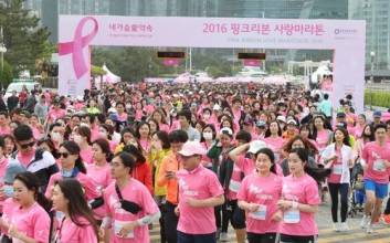 아모레퍼시픽이 주관하고 한국유방건강재단이 주최하는 ‘2018 핑크런’ 부산 대회가 3월 25일 오전 9시 부산 수영만 요트경기장에서 5000여 명이 참가한 가운데 진행됐다.‘핑크런’은 유방암과 유방 건강에 대한 인식 향상을 목적으로 매년 5개 도시에서 개최되는 러닝 축제다. 대회 참가비 전액은 한국유방건강재단에 기부되어 유방암 환자의 수술비 및 검진 지원에 사용된다.오전 8시를 전후로 핑크리본 티셔츠를 입은 참가자들이 속속 모여들며 부산 수영만 요트경기장을 메웠다. 올해 ‘핑크런’은 10km 코스 외에 가족이 함께 즐기면서 참여할 수 있는 프로그램을 강화하기 위해 5km 코스를 3km로 단축해 새롭게 선보였다. 3km 코스에 참여한 최연소 참가자 정윤지 양(2세)의 아버지 정수환 씨(39세)는 “아내와 결혼 전부터 ‘핑크런’에 참가해 벌써 올해로 4번째다. 작년에 태어난 딸과 아내, 우리 가족의 건강을 생각하며 내년에도 참여할 계획”이라고 말했다.노동영 한국유방건강재단 이사장은 “유방암은 조기 발견 시, 완치율이 90%를 상회하는 예후를 보이기 때문에 정기적인 자가검진을 반드시 실천하기 바란다”며 “앞으로도 아모레퍼시픽과 함께 여성의 건강한 아름다움을 위한 사회공헌 활동에 힘쓰겠다”고 밝혔다. 더불어 설화수 브랜드 모델인 송혜교씨가 참석해 유방암 환자와 ‘핑크런’ 참가자의 건강을 기원하며 기부금을 전달했다.한편 ‘2018 핑크런’은 대전(4월), 광주(5월), 대구(9월), 서울(10월)에서 릴레이로 개최된다. 참가 희망자는 핑크런 공식 사이트(pinkcampaign.com)와 아모레퍼시픽 사회공헌포털 (apgroupcsr.com)에서 신청할 수 있다. 아모레퍼시픽은 2000년 국내 최초 유방건강 비영리 공익재단인 한국유방건강재단을 설립하고, 유방건강 의식향상을 위한 핑크리본캠페인을 18년째 전개하고 있다. 핑크리본캠페인의 대표 프로그램인 핑크런은 2001년부터 32만 명 이상이 참가해 35억 원이 넘는 기부금을 한국유방건강재단에 전달했다.서지영 기자saltdoll@jtbc.co.kr