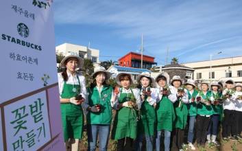 스타벅스커피코리아가 제주의 환경과 관광자원 보호를 위한 기금 5000만원을 제주올레에 전달했다. 또 제주 지역에서 근무하는 스타벅스 파트너들과 함께 올레길 꽃밭 조성 봉사활동을 했다. 2일 진행된 봉사활동에는 제주지역 스타벅스 파트너 및 제주올레 직원, 제주올레를 사랑하는 올레꾼, 효돈마을 및 하효어촌 주민 등 총 100여명의 봉사자들이 참석해 서귀포 해안길을 따라 멸종위기의 들꽃과 들풀을 심어 꽃밭을 만들었다.스타벅스가 제주올레에 전달한 환경자원 보호 기금 5000만원은 스타벅스가 제주지역에서만 특별히 선보이고 있는 제주 특화 음료 수익금 중 일부로 조성됐다. 이 기금은 제주의 풍부한 식물 자원을 소개하는 가이드북을 제작하고 올레길 생태환경 보호하는 데 쓰인다.스타벅스와 제주올레가 함께 제작하는 '올레길에서 자주 만나는 들풀·들꽃(제주 올레 식물 가이드북)'은 올레를 걸으며 여행할 때 만나볼 수 있는 다양한 들꽃과 들풀의 삽화와 함께 각각의 특징, 서식지 분포 등을 자세하게 소개한다.스타벅스 이석구 대표이사는 "제주의 지역적 특색을 살린 제품 개발로 고객에게 특별한 경험을 제공하겠다"며 "앞으로도 제주 지역사회에서 인정받는 스타벅스가 되기 위해 더욱 노력하겠다"고 밝혔다.서지영 기자 seo.jiyeong@jtbc.co.kr 2018.11.02 13:25