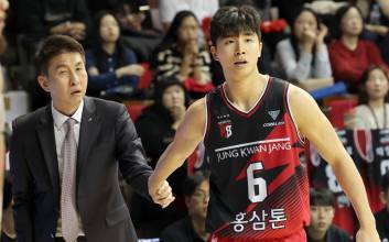 2023~2024 정관장 프로농구 안양 정관장과 원주 DB가 26일 오후 안양실내체육관에서 경기를 펼쳤다. 정관장 김상식 감독이 경기중 박지훈의 상태를 물어보고있다. 안양=정시종 기자 capa@edaily.co.kr /2023.11.26. 2023.11.26 15:51