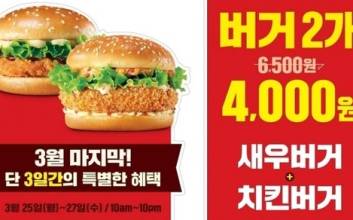 [비즈톡] 롯데리아, 새우버거+치킨버거 4000원 행사 진행 外