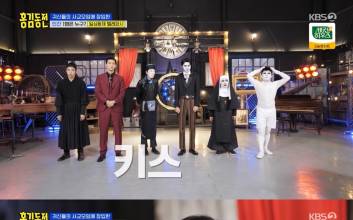 모델 주우재의 필터링 없는 표현에 홍진경이 질색했다.22일 방송된 KBS2 ‘홍김동전’이 ‘귀신들의 사교모임’ 특집으로 꾸며진 가운데, 귀신 분장을 한 ‘홍김동전’ 멤버들은 귀신들의 사교모임에 참석한 단 한 명의 인간 찾기에 나섰다.이날 방송에서 ‘홍김동전’ 멤버들은 주제어를 듣고 같은 동작을 취해야 하는 ‘일심동체 텔레파시’ 게임을 진행했다. 이때 주제어로 ‘키스’가 나오자 멤버들은 각양각색 동작을 취했다.이 가운데 주우재는 혀를 내민 파격적인 동작으로 멤버들의 원성을 샀다. 주우재의 무리수에 김숙은 “너 너무했다”며 비난했고 홍진경은 “더러워서 못 봐주겠다”며 질색했다.한편 ‘홍김동전’은 매주 오후 8시 30분 방송된다. 이세빈 기자 sebi0525@edaily.co.kr