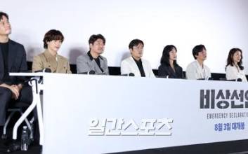 ‘비상선언’이 흥행을 향해 이륙했다. 영화 ‘비상선언’ 언론시사회가 25일 오후 서울시 강남구 메가박스 코엑스에서 열렸다. 이날 행사에는 한재림 감독을 비롯해 배우 송강호, 이병헌, 전도연, 김남길, 임시완, 김소진, 박해준이 참석해 영화에 대한 이야기를 나눴다. ‘비상선언’은 제74회 칸 영화제 비경쟁 부문 공식 초청작으로 주목받았다. 한재림 감독은 “10년 전에 작품을 제안받았다. 캐스팅을 시작할 때는 재난이 오지 않았던 시기였다. 찍으면서 여러 감정이 들었다. 특정한 재난이 아니라 재난 자체의 속성을 들여다보면 많은 함의가 있지 않나 싶었다”며 연출 의도를 전했다. 송강호는 “처음에 시나리오를 받을 때는 평범한 재난 영화로 알고 봤다. 점점 작업을 해나가면서 한재림 감독이 재난을 통해 무엇을 이야기하고 어떤 방식으로 이야기하는 것이 어른스럽게 다가간다는 생각이 들었다. 재난을 통해 알고는 있지만, 평소에 느끼지 못했던 사회 공동체의 이야기, 소중한 지점들을 담담하고 묵직하게 보여준다는 점이 와 닿았다. 인호가 처한 상황에서 최선의 방법을 찾아가는 간절함, 절절함을 표현하고 싶었다”고 말했다. 이어 “언제나 재난을 맞닥뜨릴 수 있는 상황에서 ‘비상선언’을 통해 우리가 소중하게 생각하는 지점이 무엇일까를 생각하면서 영화적 재미를 느꼈으면 한다”고 덧붙였다. 송강호와 전도연은 영화 ‘밀양’ 이후 호흡을 맞춘다. 송강호는 “전도연 씨가 비중이 큰 역할은 아니지만, 너무 빛나는 연기를 해주지 않았나 싶다”고 극찬했다. 이에 전도연은 “‘밀양’ 이후 송강호 씨와 작품을 같이하고 싶은 갈증이 있었다. ‘비상선언’에서 많이 호흡하지는 않았지만 한 작품 안에 있다는 것만으로도 든든했던 것 같다”고 화답했다. 이병헌이 맡은 재혁 역은 비행기 트라우마를 가진 캐릭터다. 이병헌은 “실제로 20대 중반에 비행기에서 공황장애를 처음으로 겪어봤다. 공황장애의 느낌과 증상들을 그 이후로도 여러 번 경험했다. 그런 부분들이 표현됐으면 했다”고 말했다. 이어 “하지만 이 영화에서 주된 이슈가 아니기 때문에 그런 상황들만 관객들에게 느껴졌으면 하는 마음으로 연기했다. 공황장애가 오면 느끼는 호흡들이 있다. 느끼면서 괴로워하면 오는 호흡, 괴로운 눈빛들, 항상 가지고 다니는 약 등이 낯설지 않아서 그런 경험들이 도움이 된 것 같다”고 설명했다. 김남길은 항공 재난에 빠진 비행기를 이끌어야 하는 부기장 현수 역을 맡았다. 그는 “재난 관련된 다큐멘터리는 아니지만, 진짜같이 해보고 싶었다. 랜딩 시뮬레이션부터 비행기 조종 버튼이나 시스템 이런 걸 눈에 보이지 않고 익숙하게 하는 그런 연습을 했다. 비행기 오락이 있는데 똑같이 조정석을 사서 집에서 연습을 핑계로 놀았다”고 해 웃음을 안겼다. 임시완은 ‘비상선언’을 통해 연기 변신을 선보였다. 주로 선한 역할을 선보였던 임시완의 캐스팅에 대해 묻자 한재림 감독은 “캐스팅에 영감이 된 것은 미국 라스베이거스 테러 사건이었다. 테러범의 기사를 찾아보니 평범한 사람이었다. 전혀 그런 일을 벌이지 않을 것 같은 평범한 사람이 이 이야기의 시작점이 되었으면 좋겠다고 생각했다”고 답했다. 이에 임시완은 “작품을 선택하는 기준 중 하나가 행동의 당위성이다. 이번 작품의 경우는 당위성이 충분히 설명되지 않았다. 혹은 아예 당위성 자체가 없던 역할이었다. 그래서 오히려 그런 게 없어서 이 역할을 표현하는 데 있어서 더 자유로울 수 있겠다는 생각이 들었다. 그래서 그런 걱정보다는 기대감이 크게 접근했다”고 설명했다. 마지막으로 송강호는 “훌륭한 동료 배우들, 그리고 12년 만에 한재림 감독과 함께해 기억에 남는 영화였다. 팬데믹 자체가 끝나지 않았지만 다양한 한국 영화를 통해 모처럼 위로를 받는 시간이 됐으면 한다”며 관람을 당부했다. ‘비상선언’은 사상 초유의 항공테러로 무조건적 착륙을 선포한 비행기와 재난에 맞서는 사람들의 이야기를 다룬 작품이다. 다음 달 3일 개봉한다. 이세빈 인턴기자