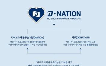 NC 다이노스가 새로운 사회공헌 프로그램은 운영한다. NC 구단은 22일 2021시즌 지역 사회와의 나눔 활동을 마무리하며 올해 새롭게 정립하는 사회공헌 프로그램 '디네이션(D-NATION)'을 소개했다. NC는 지난해 지역 후원 업체들과 손잡고 다양한 사회공헌 활동을 진행했다. NH농협은행 경남본부와 창원NC파크 홈런존 운영 및 팀 세이브 기록 연계로 적립금 1000만원을 모아 거제시 희망복지재단에 기부했다. BNK경남은행과는 홈런존 운영으로 적립금 400만원을 모아 지역 리틀야구팀 12곳에 야구용품을 전달하고 팀 도루 기록으로 모은 1000만원을 초록우산 어린이재단 경남지역본부에 기부했다. 남창원농협과는 홈경기 득점 기록과 연계해 쌓은 370만원을 인애복지재단 창원시아동보호전문기관에 전달했고, 로봇랜드, 우가주치과와는 팀 승리 기록과 연계해 지역 이웃에게 문화 체험 기회와 임플란트 시술 혜택을 나누고 있다. 이 밖에도파티마안과와 지역 내 소외 계층에 스마일 라식 의료 혜택을 선물하고, NCO(창원상공회의소 차세대경영자클럽)와 500만원 상당의 후원금을 마련해 초록우산어린이재단 경남지역본부에 기부했다. NC는 '디네이션'을 통해 그동안 진행해온 사회공헌 활동을 바탕으로 올해부터는 한 걸음 더 나아가겠다는 계획이다. 지역사회의 구성원으로 다양한 사회공헌 활동을 홍보하고 지원하는 플랫폼으로서 그 역할을 확대하겠다는 것이 목표다. '디네이션(D-NATION)'이란 다이노스를 상징하는 'D'와 다이노스가 꿈꾸는 세상인 '네이션(NATION)' 그리고 기부를 뜻하는 '도네이션(DONATION)'을 조합해 만든 단어로 야구로 사회에 지속 가능한 기여를 하고 세상 사람들에게 꿈과 용기를 준다는 의미다. 배중현 기자 bae.junghyune@joongang.co.kr 2022.02.22 17:18