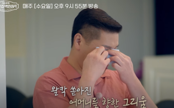 서장훈이 돌아가신 어머니를 떠올리며 눈물을 흘렸다.24일 유튜브 E채널에 ‘서장훈의 이웃집 백만장자’ 12회 선공개 영상이 게재됐다. 영상에는 서장훈과 조나단이 팝페라 가수 임형주의 집에 방문해 그의 노래를 듣는 모습이 담겼다.이날 임형주는 ‘천개의 바람이 되어’를 불렀다.‘나의 사진 앞에서 울지 마요/ 나는 그곳에 없어요/ 나는 그곳에 있지 않아요/ 죽었다고 생각 말아요/아침엔 종달새 되어 잠든 당신을 깨워줄게요/ 밤에는 어둠 속에 별 되어 당신을 지켜줄게요’라는 가사를 감미로운 목소리로 열창하는 임형주를 바라보다가 서장훈은 울컥했다.서장훈은 “가사를 듣는데 너무 갑자기 제가”라며 말을 잇지 못했고, 결국 왈칵 눈물을 흘렸다. 그는 이어 “제가 멘탈이 약하지 않은데 제가 작년에 큰일을 겪으면서 이런 노래들을 들으면 너무 주책인데 가사를 곱씹으면서 듣다 보니까 너무 슬프다”고 이야기했다.임형주는 “미약하나마 조금이나마 위로를 드릴 수 있어서 감사한 일”이라고 위로했다.서장훈은 지난해 5월 모친상을 당했다. 고인은 수년간 투병 생활을 이어온 것으로 알려졌다. 한편 농구선수 출신인 서장훈은 JTBC ‘이혼숙려캠프’, ‘아는 형님’, KBS Joy ‘무엇이든 물어보살’, SBS ‘미운 우리 새끼’ 등 여러 예능에 출연 중이다.강주희 기자 kjh818@edaily.co.kr