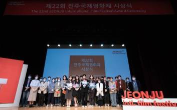 영화 '성적표의 김민영'이 제22회 전주국제영화제 한국경쟁 대상을 수상했다. 제22회 전주영화제는 5월 5일 오후 6시 한국전통문화전당에서 시상식을 열고 부문별 수상작을 발표했다. 이준동 집행위원장과 부문별 심사위원, 경쟁부문 감독과 배우 등 50여 명이 참석한 가운데 열린 이번 시상식에서는 국제경쟁, 한국경쟁, 한국단편경쟁을 비롯해 CGV아트하우스가 지원하는 창작지원상과 배급지원상, OTT 왓챠가 주목한 장‧단편, 진모터스가 후원하는 다큐멘터리상, 아시아영화진흥기구(NETPAC)에서 시상하는 넷팩상, 그리고 올해 신설한 J 비전상 등 20여 개 부문의 수상작이 모습을 드러냈다. 이날 시상식에 함께한 이준동 집행위원장은 코로나 사태로 축제로서의 영화제를 마음껏 즐기지 못한 것에 아쉬움을 표하면서도 “다 같이 모여 영화를 이야기하는 기회는 소중하다고 믿는다”는 소감을 전하며 “전주국제영화제에서 나눈 경험이 다음 영화를 만드는 데 훌륭한 바탕이 되기를 바란다”는 바람을 전했다. 국제경쟁 대상은 나탈리아 가라샬데의 '파편'에 돌아갔다. 아르헨티나의 한 군수공장에서 1995년 일어난 폭발 사건을 소재로 한 '파편'은 당시 열두 살이던 감독이 기록한 영상에서 시작한 다큐멘터리다. 작품상 또한 다큐멘터리가 수상했다. 마르타 포피보다 감독이 연출한 '저항의 풍경'은 아우슈비츠에서 레지스탕스 운동을 이끈 지도자이자 반파시스트 운동가인 ‘소냐’의 얼굴을 담고 있다. '파편'과 '저항의 풍경'이 여성 감독이 만든 다큐멘터리인 반면, 심사위원특별상을 수상한 '친구들과 이방인들'은 블랙 코미디 장르다. 오스트레일리아의 제임스 본 감독이 연출한 이 영화는 밀레니얼 세대의 눈높이로 바라본 ‘현대 호주의 초상’이라고 할 만한 작품이다. 국제경쟁 부문을 심사한 배종옥 심사위원은 이들 세 영화에 대해 “전주국제영화제의 정체성에 부합하는, 뚜렷한 독창성을 도전적으로 보여주는” 작품이라고 평가했다. 한국경쟁 대상은 이재은, 임지선 감독이 공동 연출한 '성적표의 김민영'이 수상했다. 졸업과 함께 각자의 길을 걷게 된 고교 단짝의 모습을 담은 '성적표의 김민영'은 인물의 내면을 예상을 뛰어넘는 상상력으로 펼쳐 보이는 독특한 어법을 지닌 영화다. 첫 장편 연출작으로 대상을 수상한 이재은, 임지선 감독은 이날 수상 소감에서 이 상이 “앞으로 영화를 계속할 수 있는 동력이 되어 줄 것”이라고 말했다. 한편, 배우상은 '낫아웃'의 정재광, '혼자 사는 사람들'의 공승연에게 돌아갔다. 두 배우가 연기한 광호와 진아 모두 속내를 잘 드러내지 않는 인물인데, 두 배우 모두 이를 표정과 눈빛, 몸짓의 언어로 완벽히 표현했다는 평가를 받았다. 변규리 감독의 '너에게 가는 길'은 다큐멘터리상을 수상함과 동시에 심사위원 특별언급을 받았다. 성소수자 부모모임을 소재로, 연분홍치마에서 제작한 '너에게 가는 길'에 대해 전주국제영화제 문성경 프로그래머는 “자신의 삶과 정체성을 스스로 결정하게 두지 않는 사회 속에서 누군가를 이해하려는 노력과 존중을 깊이 있게 담아낸 작품”이라고 평했다. 한국단편경쟁은 총 998편의 출품작 중 25편이 본선 심사에 올랐고, 그중 대상은 최민영 감독의 '오토바이와 햄버거'가 차지했다. 최수영 심사위원이 “디테일한 연기 연출과 공감 가는 서사를 가진 마음 따뜻해지는 드라마”라고 평한 '오토바이와 햄버거'는 부모 없이 사는 남매의 고단한 삶을 그리고 있다. 감독상은 코로나19로 인해 일자리를 잃은 노부부의 일상을 담은 '나랑 아니면'의 박재현 감독이 받았으며, 심사위원특별상은 이탁 감독의 '불모지'와 노경무 감독의 '파란거인'이 가져갔다. 한편, CGV아트하우스가 수여하는 창작지원상은 이정곤 감독의 '낫아웃', 배급지원상은 홍성은 감독의 '혼자 사는 사람들'이 수상했다. CGV아트하우스 측은 '낫아웃'에 대해 “후회와 좌절이 거듭되더라도 아직 ‘낫아웃’이기에 희망은 있고, 또 삶은 계속된다는 메시지를 섬세하게 연출한 작품”이라 평했으며, '혼자 사는 사람들'에 대해서는 “타인과 관계를 맺는 것이 서툰 현대인의 이야기로, 코로나19로 인해 더욱 단절된 현실에서 많은 관객에게 따뜻한 위로가 되는 영화”라 설명하며 선정의 변을 전했다. OTT 왓챠는 왓챠가 주목한 장‧단편을 각각 1편, 5편 선정했다. “시의성과 독창성, 대중성과 심미성 등을 종합적으로 고려해 평가하며, 국내 신예 감독들의 배출과 성장을 돕자는 취지로 제정”한 이 상에는 장편 '낫아웃'과 단편 '불모지' '마리와 나'(조은길 감독), '마리아와 비욘세'(송예찬 감독), '역량향상교육'(김창범 감독), '오토바이와 햄버거'가 꼽혔다. 전북과 전주 지역 영화 활성화를 위해 올해 신설된 J 비전상은 한국단편경쟁작 중 하나인 '스승의 날'(이지향 감독)과 코리안시네마 부문 '연인'(허건 감독)이 받았다. 여기 더해 넷팩상은 ‘베이시’라는 이름의 50년 된 재즈 카페의 현재와 과거를 조명한 호시노 데쓰야 감독의 다큐멘터리 '재즈 카페 베이시'가 받았다. 제22회 전주국제영화제에서는 여성 감독의 약진이 눈에 띄었다. 국제경쟁 대상과 작품상, 한