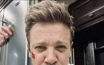 '어벤저스' 제레미 레너, 수술 후 근황 공개 '시퍼렇게 멍든 눈'
