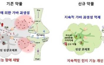 한국과학기술연구원(KIST)이 초기에만 인지기능 개선 효능을 보이는 기존 치매 치료 약물의 한계를 극복하고 장기간 치료 효과를 유지하는 신약 후보 물질을 개발해 임상시험을 추진한다.KIST는 24일 치매DTC융합연구단 박기덕 박사팀이 반응성교세포연구단 이창준 박사(현 IBS 인지 및 사회성 연구단 공동단장)팀과 함께 알츠하이머 치매 환자 뇌에서 과생성되는 신경전달물질 '가바(GABA)'의 양을 지속해 줄일 수 있는 신약 후보 물질을 개발했다고 밝혔다.이 연구 결과는 국제학술지 '사이언스 어드밴시스'에 게재됐다.연구팀은 알츠하이머 모델 쥐 실험으로 이 신약 후보 물질의 약효가 일주일밖에 지속하지 않는 기존 치료 물질 셀레길린과 달리 4주간 지속해서 가바양을 줄여 치매 환자의 기억력 저하 및 인지 장애를 획기적으로 개선한다는 사실을 확인했다고 설명했다.가바는 포유류 중추신경계에서 생성되는 억제성 신호전달물질로 치매 환자 뇌의 반응성 성상교세포에서 마오비(MAO-B) 효소에 의해 과생성돼 기억력 저하나 인지 장애를 일으키는 것으로 알려졌다.과거에 마오비 효소를 억제하는 방법으로 가바 과생성을 막아 치매를 치료하는 연구가 활발히 진행됐으나 셀레길린 같은 약물은 임상시험에서 일주일까지는 인지기능이 월등히 향상됐으나 2주 뒤에는 다시 인지기능 장애를 보이고 4주 뒤에는 원상태로 돌아가 치료제로 개발되지 못했다.연구팀은 이 연구에서 셀레길린의 약효가 지속되지 않는 원인을 밝혀냈고, 이 한계를 극복할 수 있는 새로운 기전의 신약후보물질(KDS2010)을 개발했다.셀레길린은 일주일 동안은 마오비 효소를 억제해 가바 과생성을 효과적으로 저해하지만, 장기간 투여하면 마오비 효소의 역할을 대신할 수 있는 다오(DAO) 효소가 과발현되는 대체기전이 작동, 가바가 다시 과생성되면서 약효가 떨어지는 것으로 밝혀졌다.하지만 신약후보물질 KDS2010은 치매 모델 쥐에게 먹인 결과, 4주까지 지속적이고 월등한 인지기능 개선 효능을 보였고, 행동실험 이후 치매 쥐의 뇌를 관찰한 결과 셀레길린 실험에서 관찰된 대체기전인 다오 효소가 전혀 과발현되지 않았다고 연구팀은 설명했다.박 박사는 "KDS2010은 약물적합성(ADME/Tox) 검증 결과, 인체 뇌 속으로 매우 높은 효율로 전달되고 다른 신경계에 부작용도 없는 것으로 나타났다"고 말했다. 박 박사는 "4주간 영장류 실험에서 독성도 없는 것으로 확인됐다"며 "9월까지 전 임상시험을 마치고 임상시험 승인을 신청할 계획"이라고 했다.최근 큰 기대를 모은 알츠하이머 신약이 임상시험 결과 실패로 끝나 또다시 실망을 안겨 줬다.CNN 뉴스 인터넷판 등 외신은 바이오젠 제약회사와 일본 에자이 제약회사는 함께 개발한 치매 신약 아두카누맙이 초기 임상시험에서 고무적 결과가 나와 3상 임상시험에서 2건의 임상시험을 동시에 진행해 왔으나 성공 가능성이 없다는 평가가 나와 임상시험 중단을 발표했다고 지난 21일 보도했다.아두카누맙은 치매 주범으로 지목되는 뇌 신경세포 표면의 독성 단백질 베타 아밀로이드 응집(플라크)을 감소시키는 약이다.아두카누맙은 초기 임상시험에서 베타 아밀로이드 플라크를 제거하고 치매 환자의 인지기능을 개선하는 효과도 있는 것으로 나타났다.아두카누맙의 임상시험은 지난 20년 동안 치매 주범으로 지목돼 온 베타 아밀로이드 가설(Hypothesis)의 진위를 가리는 마지막 임상시험 중 하나였다.그동안 일라이 릴리·아스트라제네카·로슈·화이자·머크·존슨 앤드 존슨 등 대형 제약 회사들이 베타 아밀로이드를 표적으로 한 신약을 개발했지만 임상시험에서 모두 실패했다. 권오용 기자 kwon.ohyong@jtbc.co.kr