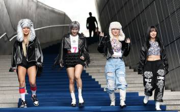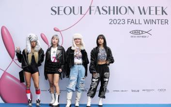 안무팀 코카앤버터 리헤이, 제트썬, 비키, 가가가 17일 오후 서울 중구 동대문디자인플라자에서 열린 '2023 F/W 서울패션위크' 홀리넘버세븐 포토콜 행사에 참석해 포즈를 취하고 있다. 서병수 기자 qudtn@edaily.co.kr /2023.03.17. 2023.03.17 15:35
