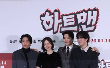 배우 박지환, 문채원, 권상우, 표지훈이 8일 오후 서울 송파구 롯데시네마 월드타워점에서 열린 영화 '하트맨' 언론배급시사회 및 기자간담회에 참석해 포토타임을 갖고 있다. '하트맨'은 돌아온 남자 승민(권상우)이 다시 만난 첫사랑을 놓치지 않기 위해 고군분투하지만, 그녀에게 절대 말할 수 없는 비밀이 생기며 벌어지는 코미디. 오는 14일 개봉. 서병수 기자 qudtn@edaily.co.kr /2026.01.08/ 2026.01.08 17:05