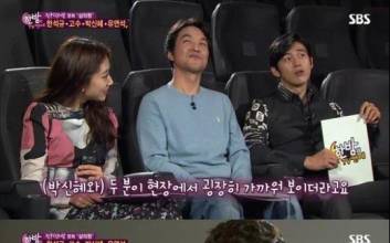 유연석, "박신혜와 썸 타고 싶어" 너스레배우 고수(37)가 유연석(30)과 박신혜(24)의 다정한 모습에 대해 폭로했다. 10일 방송된 SBS ‘한밤의 TV연예’에서는 영화 ‘상의원’에 출연하는 네 주연배우 고수, 박신혜, 유연석과 한석규(50)의 인터뷰가 진행됐다. 이날 한석규와 고수는 유연석, 박신혜를 향해 “유연석이 박신혜에게 질문도 많이 하고 그러더라. 썸 타는 줄 알았다”고 밝혔다. 이에 박신혜는 “촬영 후에 연락이 없더라”고 말했으며 유연석은 “제발 썸을 타고 싶다”며 너스레를 떨었다. 소식을 들은 누리꾼들은 "유연석-박신혜, 유연석이 다정한 성격인듯" "유연석-박신혜, 박신혜 예쁘네" "유연석-박신혜, 번호정도느 알겠지"등의 반응을 보이고 있다.온라인 일간스포츠‘유연석’‘박신혜’ [사진 SBS 방송화면 캡처]
