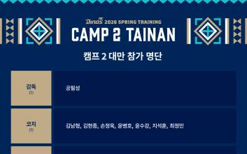 NC 다이노스 2군(C팀)이 대만으로 스프링캠프를 떠난다. 1월 25일부터 마산야구장에서 훈련한 NC C팀은 오는 7일 대만 타이난으로 출국, 3월 3일까지 24박 25일간 현지에서 캠프 일정을 소화할 예정이다.이번 C팀 캠프에는 공필성 C팀 감독을 비롯해 코칭스태프 11명(트레이닝 코치 3명 포함)과 선수 27명 등 총 44명이 참가한다.팔꿈치 수술 후 재활 중인 베테랑 이재학을 비롯해 좌완 불펜 임정호, '신예' 신영우와 목지훈 등이 포함됐다. 야수진에는 도태훈과 한석현 등이 이름을 올렸다. 선수단은 4일 훈련, 1일 휴식 일정으로 체력 및 기술 훈련을 병행한다. 캠프 후반부에는 대만 프로야구리그(CPBL) 소속 타이강 호크스, 유니라이온즈, CTBC 브라더스 등 3개 팀과 총 4차례 평가전을 치르며 실전 감각을 점검한다.C팀 선수단은 모든 일정을 마친 뒤 3월 3일 인천국제공항을 통해 귀국할 예정이다. 2026.02.03 14:24