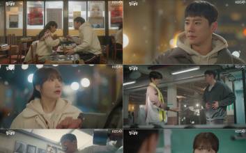 ‘24시 헬스클럽’ 이준영과 정은지가 ‘득근득근’한 연애를 시작했다.4일 방송된 KBS2 수목드라마 ‘24시 헬스클럽’ 11회에서는 마침내 서로의 마음을 확인한 도현중(이준영)과 이미란(정은지)의 모습이 그려졌다.이날 현중은 헬스 전문 잡지 ‘머슬맨코리아’로부터 표지 모델 제안을 받고 흔쾌히 수락했지만, 평생 처음으로 체지방률이 10%를 초과했다는 사실에 혼돈에 빠졌다. 근 손실을 인정할 수 없었던 그는 ‘다비드의 환생’을 목표로 다시 한번 몸만들기에 돌입했다.하지만 미란을 볼 때마다 떡볶이의 유혹에 흔들리는 현중은 1.5kg짜리 아령에서조차 떡볶이를 연상하는 등 탄수화물 금단 현상을 겪기 시작했다. 최대한 미란을 피하며 외면했다.현중과 잘 돼가고 있다고 생각한 미란은 자신을 피해 다니는 그에게 상처를 받았다. 미란은 연애 고수인 여동생 이지란(이다은)에게 플러팅 기술까지 배우며 심기일전에 나섰지만, “떡볶이 이야기 좀 그만하라. 지긋지긋다”는 현중의 일침에 혼란을 느꼈다. 의기소침해진 미란은 이내 회사에서 하와이 지사 파견 소식을 들었다.한편 금단 현상에 괴로워하던 현중은 홀로 찾은 떡볶이집에서 미란과 우연히 마주쳤고, 자신이 좋아하는 건 떡볶이가 아닌 이를 함께 먹은 미란이었다는 걸 깨달았다. 이후 그는 ‘머슬맨코리아’ 표지 모델 자리를 포기하고 미란을 선택, ‘입덕 부정기’를 끝냈다.하지만 이미 상처받은 미란은 트레이너를 알렉스(이승우)로 변경하며 헬스장에도 나타나지 않았고, 그의 빈자리에 아쉬움을 느낀 현중은 지란의 도움으로 ‘산스장’(산+헬스장)에 있는 미란을 찾아갔다.미란을 마주한 현중은 “예전엔 빼주고 싶었던 회원님의 지방이 귀엽다. 이제 트레이너 자격 없다. 좋아한다”고 고백했다. 미란은 입맞춤으로 화답했고, 두 사람의 키스 엔딩은 보는 이들의 ‘마음 근육’을 자극했다. 한편 ‘24시 헬스클럽’ 최종회는 5일 오후 9시 50분에 방송된다.