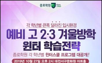 대전 종로학원 예비고2·3 윈터스쿨 설명회 개최. 겨울방학 이렇게 대비하라!