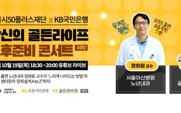 KB국민은행은 오는 19일 서울시50플러스재단과 공동 주관하는 은퇴자산 관리 세미나 '당신의 골든라이프, 노후 준비 콘서트 시즌2' 3회차 행사를 개최한다고 6일 밝혔다.세미나는 작년에 이어 올해도 연 3회 시리즈로 진행 중이다. 전문가들이 고객에게 노후 준비 및 연금자산 관리 솔루션을 제공하고 있다.이번 3차 세미나는 노후 준비에 가장 핵심적인 '은퇴 설계'와 '노년 건강'이 주제다.은퇴자산 관리 상담센터인 KB골든라이프센터 손경미 센터장이 퇴직 전 점검해야 할 체크포인트를 사례 중심으로 전달한다. 서울아산병원 노년내과 정희원 교수는 느리게 나이 드는 법을 소개할 예정이다.세미나 중 실시간 채팅창으로 은퇴 설계 질의응답도 진행한다.세미나 참여를 희망하면 'KB골든라이프-X'와 '서울시50플러스포털'에서 15일까지 사전 신청해야 한다. 현장 방청은 서울시50플러스재단 홈페이지에서만 할 수 있다.KB국민은행 관계자는 "생방송 퀴즈와 참여 후기 등 온·오프라인 이벤트를 다양하게 준비했으니 많은 관심과 참여를 바란다"고 했다.정길준 기자 kjkj@edaily.co.kr