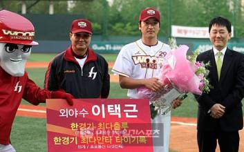 이택근, 최다안타·최다출루 타이기록 상 수상