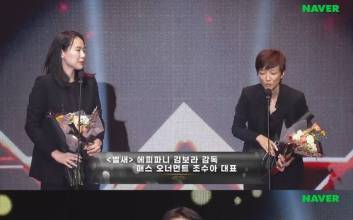 '벌새'가 부일영화상 최우수작품상을 수상했다. 주연상은 이병헌과 정유미에게 돌아갔다. '벌새'는 22일 오후 부산시 해운대구 우동 벡스코 오디토리움에서 열린 제29회 부일영화상에서 최고 영예인 최우수 작품상 수상작으로 호명됐다. '벌새'의 제작사 매스 오너먼트의 조수아 대표는 "이렇게 큰 상을 주셔서 정말 감사드린다. 이 영화가 만들어질 때까지 많은 분들이 함께해주셨다. 모두에게 주시는 상이라고 생각한다"는 소감을 전했다. 이어 '벌새'의 김보라 감독은 "2년 전에 부산에서 벌새가 첫 상영됐는데, 2년 후 이 자리에서 상을 받는다 세상에 보내는 편지 같은 마음으로 이 영화을 만들었다. 세상에 내가 보낸 편지가 너무 큰 화답으로 돌아왔을 때 기적 같았다. 이 모든 기적을 만들어주신 분들에게 진심으로 감사드린다"고 말했다. '남산의 부장들' 이병헌과 '82년생 김지영'의 정유미는 남녀주연상을 받았다. 정유미는 예정돼 있었던 일정으로 참석하지 못했다. 이병헌은 "4년 전에 우민호 감독님의 '내부자들'로 부일영화상을 받았다. 이번에 또 우민호 감독님과 '남산의 부장들'을 해서 받는다. 묘한 인연이다"라며 '남산의 부장들'을 촬영하면서 '연기를 놀랍도록 잘하는 배우들이 많구나'라는 생각을 했다. 주요 배우 분들과 처음 연기해봤는데, 정말 놀라움을 금치 못한 순간들이 있었다. 이 영화의 어떤 누가 상을 받아도 이상하지 않을 거다. 배우들과 호흡, 시너지가 이런 상을 받을 수 있게끔 해준 것이 아닐까한다. 정말 고맙다"는 소감을 남겼다. '남산의 부장들'의 이희준과 '반도'의 이레는 조연상의 영예를 안았다. 이레는 참석하지 못했다. '남산의 부장들'을 위해 25kg을 증량했던 이희준은 "매일 밤 저와 치킨을 먹어준 와이프 이혜정씨, 육아 때문에 고생이 많은데 고맙고 사랑한다. 더 좋은 작품으로 인사 드리겠다. 감사하다"는 소감을 밝혔다. 신인상은 '호흡' 김대건과 '찬실이는 복도 많지' 강말금에게 돌아갔다. 신인 남자 연기상을 받은 김대건은 "예상을 못하고 왔다. 후보에 오른 것만으로도 감사하다. 영광스럽고 감사하다. '호흡'이라는 영화에서 민구라는 역할로 영화에 참여하면서 가졌던 마음가짐, 이 무대 위에서 떨며 이야기하는 순간 절대 잊지 않고 한발 더 자신있게 내딛겠다"고 말했다. 신인 여자 연기상을 수상한 "젊고 예쁜 배우 분들이 많은데 제가 상을 받아서 행복하지만 부끄럽고 미안하기도 하다. 저는 주인공을 많이 해본 적이 없는데, 이 영화 촬영 현장에서 주인 의식이라는 걸 깊이 느꼈다. 그게 참 좋았다. 영화가 사랑도 받고 상도 받으니 이렇게 좋아도 되나라는 생각도 든다. 김초희 감독님 덕분인 것 같다. 영광을 돌리겠다"고 밝혔다. 이하 29회 부일영화상 수상자(작). ▶최우수 작품상 '벌새' ▶최우수 감독상 '유열의 음악앨범' 정지우 ▶남우 주연상 '남산의 부장들' 이병헌 ▶여우 주연상 '82년생 김지영' 정유미 ▶남우 조연상 '남산의 부장들' 이희준 ▶여우 조연상 '반도' 이레 ▶신인 감독상 '작은 빛' 조민재 ▶신인 남자 연기상 '호흡' 김대건 ▶신인 여자 연기상 '찬실이는 복도 많지' 강말금 ▶각본상 '벌새' 김보라 ▶촬영상 '다만 악에서 구하소서' 홍경표 ▶음악상 '유열의 음악앨범' 연리목 ▶미술/기술상 '다만 악에서 구하소서' 이건문 ▶유현목 영화예술상 김일권 ▶남자 인기스타상 '반도' 강동원 ▶여자 인기스타상 '양자물리학' 서예지 박정선 기자 park.jungsun@jtbc.co.kr 2020.10.22 19:12