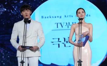 최진혁 나나가 1일 오후 서울 강남구 삼성동 코엑스에서 열린 ’제55회 백상예술대상' 시상식에서 수상자를 발표하고 있다.TV·영화를 아우르는 국내 유일무이한 종합예술시상식인 ‘55회 백상예술대상’은 방송인 신동엽, 배우 수지와 박보검이 MC로 나서며 JTBC·JTBC2·JTBC4에서 생중계된다.특별취재단 / 2019.05.01/ 2019.05.01 22:51