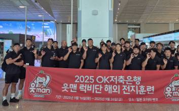 OK 읏맨 럭비단이 전국체육대회를 앞두고 전력 점검을 위해 해외로 향한다.OK금융그룹은 OK 읏맨 럭비단이 16일부터 26일까지 11일간 일본 오이타 벳푸에서 해외 전지훈련을 진행한다고 밝혔다.읏맨 럭비단은 오는 10월 열리는 ‘제106회 전국체육대회’를 대비해 지난 6월부터 체계적인 훈련 일정을 소화하고 있다. 선수단이 최상의 몸 상태를 갖출 수 있도록 벌크업 기간을 먼저 소화하며 컨디션을 끌어올렸고 7월에는 체력과 기본기 점검에 주력했다. 지난 8월에는 강원도 평창으로 전지훈련을 떠나 팀 전략 · 전술 역량을 정비하고 가다듬는 데 힘썼다.이번 해외 전지훈련은 앞선 국내 전지훈련에 이어 팀 차원의 역량을 한층 더 향상시키는 데 중점을 둘 예정이다. 팀 단위 기술 훈련 위주로 전지훈련 일정을 구성한 읏맨 럭비단은 일본 럭비 리그원 디비전3 소속 루리로 후쿠오카와 연습경기를 통해 실전 감각도 끌어올릴 계획이다.지난 2023년 실업팀 전환 이후 읏맨 럭비단은 최윤 OK금융그룹 회장의 지원 아래 꾸준히 성장했다. ‘2024 코리아 슈퍼럭비리그’와 지난해 방영된 세계적인 엔터테인먼트 서비스 ‘넷플릭스(Netflix)’ 예능 ‘최강럭비: 죽거나 승리하거나’에서 준우승을 차지했을 뿐만 아니라 ‘제105회 전국체육대회’에서도 은메달을 목에 걸었다.2023년부터 매년 두 차례 해외 전지훈련을 진행 중인 읏맨 럭비단은 올해 코칭스태프까지 보강하며 도약을 노리고 있다. 읏맨 럭비단 오영길 감독은 “매년 읏맨 럭비단을 위해 아낌없는 투자를 해주시는 최윤 회장님께 다시 한번 감사하다. 지난해 놓친 전국체육대회 금메달을 목에 걸기 위해 선수들과 ‘원 팀(One Team)’으로 더 똘똘 뭉쳐 성장하고 나아가겠다”라고 각오를 다졌다.한편, 제24대 대한럭비협회장을 역임한 최윤 회장은 금융사 최초의 럭비 실업구단인 ‘읏맨 럭비단’ 창단과 럭비선수 특별채용, 중고 럭비부 및 럭비 국가대표 지원 등을 해왔다. 지난 8월에는 중학교 럭비 선수 대상으로 ‘OK 읏맨 럭비 아카데미’를 성공적으로 개최해 올바른 럭비 정신을 알리고 기술적인 부분을 교육하는 등, ‘러거’ 꿈나무 양성에 앞장섰다.윤승재 기자 2025.09.16 12:50