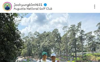 배우 류준열, 마스터스 '일일 캐디' 깜짝 등장…김주형 대신 클럽 잡고 파까지