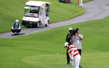 [포토]신다인, 우승 노리는 연장전 어프로치샷