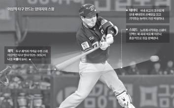 “너는 왜 그렇게 살살 쳐?” 양의지(32·NC 다이노스)는 학창 시절부터 이런 질문을 수없이 받았다. 힘들이지 않고 툭툭 공을 때리는 그의 모습을 보고 성의 없이 스윙한다고 오해하는 선배도 많았다. “저는 세게 치는 건데요?” 양의지의 대답은 한결같았다. 2006년 두산에 입단한 그는 2015년부터 중심타자로 활약했다. 그제야 양의지는 살살 친다는 오해에서 벗어날 수 있었다. 양의지는 27일 현재 타격 1위(0.377)를 달리고 있다. 그는 지난해에도 타격왕 경쟁(0.358·2위)을 했다. 올 시즌 NC로 이적해 부담이 큰 상황에서도 뛰어난 타격을 하고 있다. 타격 2위(두산 페르난데스·0.340)와의 격차가 꽤 크다. 관련기사 돌아온 두산 함덕주, 벌써 14세이브 지난해 타율 10위 안에 든 선수 중 올해도 톱 10에 드는 선수는 양의지와 이정후(0.322·9위·키움)뿐이다. 변동이 많은 KBO리그에서 양의지가 안정적인 성적을 내는 건 ‘살살 치는’ 것 같은 스윙 메커니즘 때문이다. 이종열 KBO 기술위원(국가대표팀 코치)은 “양의지는 힘들여서 치는 것 같지 않다. 그러나 타구는 강하게 날아간다. 파워를 아주 잘 이용하고 있다는 뜻”이라고 설명했다. 배트 스피드는 0에서 시작해 10까지 올라갔다가 결국 0에서 멈춘다. 타격은 0.4초 만에 이뤄지는 찰나의 승부다. 그래서 타자들은 0에서 10까지 급가속을 한다. 그러다 보니 최고 스피드에 너무 빨리 다다르는 경우가 많다. 막상 공을 때릴 때는 10이 아닌 7~9의 힘일 때가 많다. 양의지는 스윙 속도를 점차 높여 임팩트 때 10을 만든다. 공을 정타로 맞힌 뒤 배트 스피드가 자연 감소한다. 이 과정을 잘못 이해하면 스윙이 빠르지 않다고 생각하는 것이다. 이종열 위원은 “양의지의 스윙은 끊어지지 않는다. 하체→허리→상체→팔→배트로 이어지는 힘의 이동이 부드럽다. 부드러운 관절과 뛰어난 기술을 갖고 있기 때문”이라며 “양의지는 구종·코스별로 임팩트 존이 확실한 선수다. 임팩트 때 10의 힘을 쓸 확률이 가장 높은 타자”라고 말했다. 선수·코치가 말하는 ‘배트 스피드’라는 용어는 도그마와 같다. 뉴턴의 운동 제2 법칙(F=ma)에 따르면 타구의 힘은 질량(배트)과 가속도에 비례한다. 양의지는 물리학 이론을 충실히 활용하고 있다. 눈에 보이는 ‘속도’에 집착하지 않고 타구의 힘을 만드는 ‘가속도’를 내는 것이다. 스윙 스피드 못지않게 궤적도 중요하다. 양의지의 스윙 궤적은 투구 궤적과 거의 일치한다. 중·고교 코치들은 다운 컷(위에서 내리찍는 스윙)을 강조한다. 메이저리그에서는 뜬공을 많이 치기 위한 어퍼컷 스윙이 유행이다. 그러나 양의지는 공이 날아오는 궤적을 따라 레벨 스윙을 한다. 2m 정도의 높이에서 스트라이크존으로 떨어지는 공을 때리려면 수평에서 약간 올라가는 스윙 궤적이 적합하다. 이종열 위원은 “양의지 타구의 상당수가 메이저리그에서 말하는 배럴 존(Barrel zone)을 형성한다”고 말했다. 배럴 존은 26~30도 발사각의 타구가 시속 160㎞의 속도로 날아가는, 이상적인 타구의 집합이다. 덕분에 양의지는 파워에 비해 많은 홈런(9개·공동 4위)을 때리고 있다. 마지막으로 포수로서 가진 경험과 데이터가 양의지의 타격을 완성하고 있다. 투수와 타자의 특성을 활용해 최적의 공배합을 계산하는 게 포수의 덕목이다. 이에 대한 질문과 답을 가장 많이 가진 선수가 양의지다. 평범한 포수들은 상대 배터리의 수를 읽어도 타격 기술이 따라가지 못하는 경우가 많다. 그러나 양의지는 포수로서 얻은 정보를 타격에 십분 활용한다. 지난 겨울 자유계약선수(FA) 한파 속에 양의지는 KBO리그 역대 2위 계약(4년 125억원)으로 NC 유니폼을 입었다. NC가 거금을 투자한 이유는 양의지가 포수로서, 그리고 타자로서 모두 최고라고 판단했기 때문이다. 안정적인 메커니즘을 갖고 있기 때문에 슬럼프에 빠져도 금세 회복한다는 점도 확인했다. NC의 선택은 틀리지 않은 것 같다. 선수의 종합 능력을 판단하는 지표인 WAR(대체선수 대비 승리기여도)에서 양의지는 스탯티즈 기준 1위(3.17·2위는 키움 김하성), KBO 기준 2위(2.81·1위는 키움 박병호)다. 온라인 일간스포츠 2019.05.28 08:53