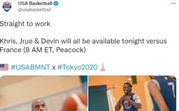 놀라운 체력과 정신력에 감탄마저 나온다. 고도의 집중력을 필요로 하는 챔피언결정전을 막 끝마친 미국프로농구(NBA) 스타들이 곧장 올림픽 무대에 나선다. 미국농구협회(USAB)는 25일(한국시간) 데빈 부커(피닉스), 즈루 할러데이, 크리스 미들턴(이상 밀워키)의 미국 남자 농구대표팀 합류 사진을 공개했다. 협회는 "세 선수 모두 25일 밤 9시 시작하는 프랑스전을 소화할 수 있다"고 덧붙였다. AP통신에 따르면 세 선수는 지난 24일 밤 11시 도쿄에 도착했다. 미국 대표팀이 묵는 호텔에 도착한 시간은 이미 25일로 넘어간 새벽 1시, 조별리그 첫 경기까지 24시간도 채 남지 않은 시간이다. 새벽임에도 불구하고 노장 그렉 포포비치 감독(72)은 세 선수를 버선발로 마중 나가며 반가움을 표현했다. 세 선수의 뒤늦은 합류는 21일 막을 내린 2020~21 NBA 챔피언결정전 때문이다. 할러데이와 미들턴이 속한 밀워키는 부커가 소속된 피닉스를 시리즈 전적 4승 2패로 꺾고 50년 만의 우승을 차지했다. 세 선수 모두 시리즈 내내 팀에 굉장한 영향력을 미쳤다. 챔피언결정전에서 모든 걸 다 쏟아낸 듯 보였지만, 아직 한방이 남아있었다. 미들턴은 "드디어 도착했다. 당연히 준비됐다"고 했고, 부커 또한 "긴 비행이었지만, 도착했다. 준비됐다"라고 덧붙였다. 며칠 전까지 챔피언결정전을 소화한 선수들이기에 경기 감각은 최상이지만 체력, 시차, 대표팀 내 호흡 등은 문제가 될 수도 있다. 이에 25일 조별리그 첫 경기인 프랑스전은 출전하지 않을 것으로 예상됐으나, 협회의 발표를 보아하니 일정 부분이라도 경기를 소화할 가능성이 있다. 특히 할러데이의 끈끈한 수비는 미국 대표팀에 큰 힘이 되어줄 것으로 보인다. 미국 남자 농구대표팀은 프랑스, 이란, 체코와 함께 A조에 편성됐다. 25일 밤 프랑스를 시작으로, 28일 이란, 31일 체코를 상대한다. 한편 미국 남자 농구대표팀은 이번 2020 도쿄 올림픽에서 올림픽 4연패를 노리고 있다. 미국은 2008년 베이징 대회를 시작으로 2012년 런던, 2016년 리우데자네이루 대회까지 올림픽 3연패를 달성했다. 강혜준 인턴기자