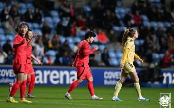 역대 전적과는 별개로 양 팀은 팽팽한 승부를 펼쳤다. 선제골은 한국에서 나왔다. 공격수 곽로영의 발끝에서 나왔다. 전반 11분 곽로영이 하프라인 부근에서 일본 선발팀 수비수 지토 와카바의 공을 빼앗은 뒤 전력질주, 골키퍼 앞에서 침착한 오른발 칩슛으로 선제골을 터뜨렸다. 한국은 곽로영의 선제골에 분위기가 좋아졌다. 경기 내내 일본을 압박했다.이날 경기에서 골을 넣은 곽로영과 함께 미드필더 배예빈도 눈길을 끌었다. 양발을 자유자재로 사용하는 배예빈은 빠른 스피드와 탈압박 능력을 보였다. 배예빈은 18세이던 지난해 8월 카타르 20세 이하(U-20) 여자월드컵에 선발, 선배들을 제치고 3경기 모두 선발로 나섰다. 지난 2월에도 콜린 벨(영국) 감독이 이끄는 A대표팀에 발탁, 아놀드 클라크컵에 참여했다.일본에 실점을 내줘 승부는 원점이 됐다. 전반 23분 일본의 역습 상황에서 실점했다. 왼쪽에서 건너온 크로스를 일본 공격수 와타나베 리사코가 감각적인 패스로 뒤로 흘렸다. 이를 받은 미드필더 니키 마나미가 오른발 슛으로 골망을 흔들었다. 슛 각도가 좋지 않은 상황에서도 기어코 득점을 만들어냈다.