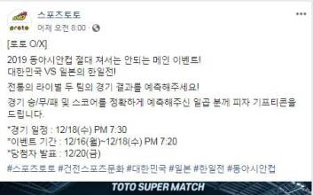 스포츠토토 공식페이스북, 2019 동아시안컵 한일전 대상 토토 명승부 이벤트 실시