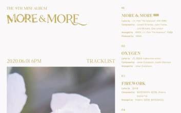 트와이스가 설렘을 담은 노래를 낸다.     30일 트와이스 공식 SNS 채널에 타이틀곡 'MORE & MORE'부터 'OXYGEN'(옥시전), 'FIREWORK'(파이어워크), 'MAKE ME GO'(메이크 미 고), 'SHADOW'(섀도), 'DON’T CALL ME AGAIN'(돈트 콜 미 어게인), 'SWEET SUMMER DAY'(스위트 서머 데이)까지 총 일곱 곡의 하이라이트 영상이 올라왔다. 신보 컨셉트가 담긴 티저 이미지와 각 트랙의 음원 일부가 담겨있어 완곡에 대한 궁금증을 고조시켰다.     'MORE & MORE'는 JYP엔터테인먼트 수장이자 아시아 최고의 프로듀서 박진영을 필두로 엠엔이케이(MNEK), 줄리아 마이클스(Julia Michaels), 저스틴 트랜터(Justin Tranter), 자라 라슨(Zara Larsson) 등 유수 작가진이 의기투합해 퀄리티를 높인 곡이다. 트와이스는 사랑의 설렘과 달콤함이 무르익을 때 서로가 더 서로를 원하게 되는 감정을 노래한다.     2번 트랙 'OXYGEN'은 트와이스의 경쾌함이 돋보이는 곡으로 멤버들의 상큼한 목소리에 밝은 셔플 리듬이 더해졌다. 'FIREWORK'는 라틴 장르의 노래로 사랑에 빠진 감정과 상황을 불꽃놀이에 비유했다.      나연이 단독으로 작사한 'MAKE ME GO'는 망설이지 말고 다가오라는 메시지를 풀어낸 곡. 재치 있는 애드리브로 듣는 재미를 배가했다. 그동안 감춰왔던 감정을 털어놓겠다는 'SHADOW'에는 샤이니 'View'(뷰), 레드벨벳 'Dumb Dumb’(덤 덤), 태연 'Why'(와이) 등 다수의 히트곡을 만든 영국의 작곡가 팀 런던 노이즈(LDN Noise)가 참여했다.     'DON’T CALL ME AGAIN'은 이미 끊어져 버린 인연임에도 계속 미련을 버리지 못하는 상대에게 경고를 던지는 트랙이다. 'SWEET SUMMER DAY'는 정연과 채영이 각각 작사와 랩 메이킹을 맡아, 지금 이 순간을 즐기자는 마음을 가사에 녹였다. 다가오는 여름에 청량감을 선사해 줄 노래다.     트와이스 신보 'MORE & MORE'는 6월 1일 오후 6시 발표된다.  황지영기자 hwang.jeeyoung@jtbc.co.kr