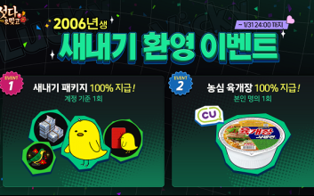 NHN은 '한게임 섯다&맞고'가 2025년 새해를 맞아 연 나이 19세가 된 2006년생을 대상으로 새내기 환영 이벤트를 시작했다고 7일 밝혔다.이번 이벤트는 새해를 맞아 새로 게임에 진입 가능해진 연 나이 19세의 2006년생 이용자를 겨냥해 마련했다. '한게임 섯다&맞고'는 20대 비중이 25% 이상을 차지한다.신규 가입하는 2006년생 전원에게 새내기 환영 패키지와 농심 육개장 기프티콘을 100% 지급한다. 패키지에는 한게임 캐릭터 '삥아리' 캐릭터 스킨 90일, 삥아리 패쪼기 90일, 고도리 이모티콘 90일, 게임 머니 1억쩐이 포함된다.농심 육개장 기프티콘은 이벤트 배너에서 응모 가능하며 100% 당첨이 확정된다. 기프티콘은 이벤트 종료 후 순차적으로 발송될 예정이다.또 NHN는 이달 중 새해 첫 업데이트로 상위 랭킹 이용자들을 위한 신규 경쟁 콘텐츠를 공개할 계획이다. 지역 점령전의 최강 동호회(길드) 간 경쟁이 펼쳐진다.최영두 NHN 모바일 웹보드사업 그룹장은 "올해에도 신규 및 기존 이용자층을 모두 만족시킬 수 있는 이벤트와 업데이트를 준비하고 있으니 많은 기대를 부탁한다"고 말했다.정길준 기자 kjkj@edaily.co.kr