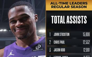 ‘매직 넘었다’ SAC 웨스트브룩, 정규리그 통산 어시스트 단독 7위