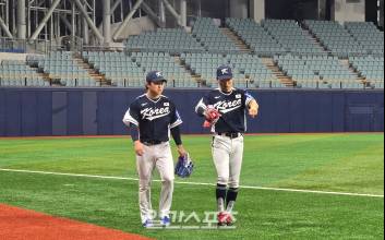 나흘 전까지 적이었던 박해민(35·LG 트윈스)과 문현빈(21·한화 이글스)가 국가대표팀에서 의기투합한다. 지난달 26일 열린 한국시리즈(KS·7전 4승제) 1차전. 1회 초 1사 1루에서 문현빈이 친 타구가 가운데 담장까지 뻗었지만, LG 중견수 박해민이 뛰어올라 잡아내며 한화의 득점을 막아냈다. 박해민은 정규시즌 유독 한화전에서 환상적인 호수비를 펼쳐 대전팬 원성을 산 선수다. 그게 KS 1차전에서 나왔다. 이튿날 문현빈이 응수했다. 2차전 1회 초 1번 타자 황영문이 안타를 치며 만든 기회에서 그가 임찬규를 상대로 우월 투런홈런을 치며 한화의 기선 제압을 이끌었다. 문현빈은 삼성 라이온즈와의 플레이오프(PO) 5차전까지 타율 0.444 2홈런 10타점을 기록하며 뜨거운 타격감을 보여줬고, 가을야구를 처음 경험하는 선수답지 않게 기세 넘치는 타격을 이어갔다. KS 1·2차전을 뜨겁게 달군 두 선수는 이후 서로를 동경했다. 마침 KS가 끝나면 체코·일본과 열리는 평가전(케이 베이스볼 시리즈) 대표팀에서 함께 호흡할 수 있었다. 문현빈은 "박해민 선배님에게 수비를 배우고 싶다"라고 했고, 박해민은 "나는 타격을 물어볼 것"이라며 반겼다. KS는 LG의 우승으로 끝났다. 문현빈과 박해민은 짧은 휴식을 보내고 4일 대표팀에 합류해 비로소 같은 유니폼을 입고 훈련했다. 실제로 컬래버가 이뤄졌다. 대표팀 주장을 맡기도 한 박해민은 "타격에서는 같은 조가 아니었지만, 수비를 할 때 (문)현빈이가 타구를 처리할 때 첫 발을 어떻게 떼어야 하는지 물어보더라. 앞으로도 운동을 할 시간이 많으니, 궁금한 게 있으면 언제든 물어보라고 했다. 정말 배우고 싶어 하는 마음이 커 보였다"라고 했다. 이어 박해민은 "나도 같은 조에서 타격 훈련을 하면 어떤 식으로 접근하는지 물어보겠다"라고도 귀띔했다. 대표팀 생활이 야구 인생 터닝 포인트가 된 이들이 많다. 현재 방송 활동도 활발한 전 KIA 타이거즈 에이스 윤석민은 한국 야구 레전드 포수 박경완과 배터리로 호흡한 뒤 시야가 넓어졌다고 밝힌 바 있다. KBO리그에서 가장 뛰어난 폼을 가진 선수들이 태극마크를 달고 국제대회에 나간다. 대회 성적만큼 선수 개별적으로는 큰 도움이 되는 경험이다. 데뷔 3년 차에 리그 정상급 타율 성적(0.320·5위)을 남기고 포스트시즌까지 경험한 문현빈이 리그 최고의 외야수들과 함께 뛸 기회까지 얻었다. 박해민과 문현빈 그리고 대표팀 선수 사이 시너지 효과가 야구팬 기대감을 높이고 있다. 안희수 기자 anheesoo@edaily.co.kr 2025.11.05 14:00